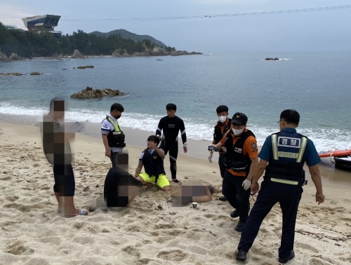 동해해양경찰서는 어제(26일) 저녁 삼척시 장호해변에서 스노클링 중 파도에 떠밀려 허우적거리는 30대 남성 ...