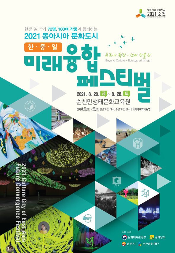 동아시아문화도시는 매년 한중일 대표 도시를 선정하여 각국 공식행사 및 연중 문화교류 행사를 개최하는 사업으로 한중일 미래융합 페스티벌에서는 자연과 예술의 융합과 코로나19의 극복 염원과 미래상을 담은 한·중·일 210여명 작가들이 참여했으며, 공동주관 한국차위원회와 함께 한중일 공통 문화코드인 티 카니발을 연계하였고 순천예술문화단체총연합회/한국미술협회 순천지부, 중국 Asia Art Center와의 협업을 통해 순천문화재단이 전체 주관하였다. -끝-