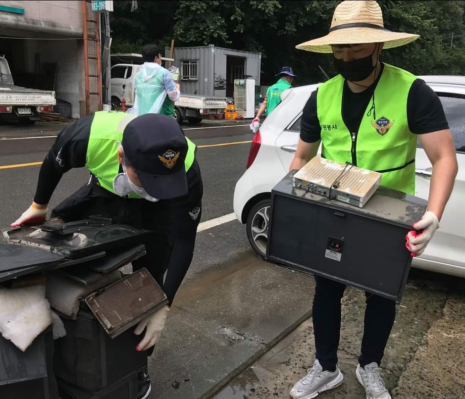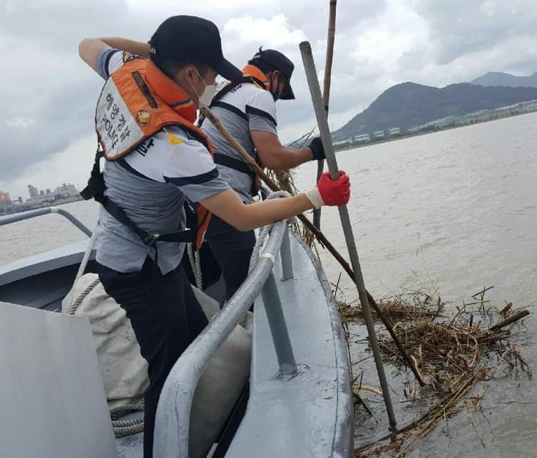 이에 앞서 통영해경은 경찰관 및 의무경찰 약 80여명이 12일과 13일 화개장터를 찾아 집중호우로 침수피해를 입은 장터 곳곳에 쌓여있는 수해 쓰레기를 제거하고 흙탕물에 오염된 가재동구 등을 정리하였으며, 해상에서는 연안구조정과 경비정이 해상부유물을 수거하는 등 연안정화 활동을 실시하였습니다.