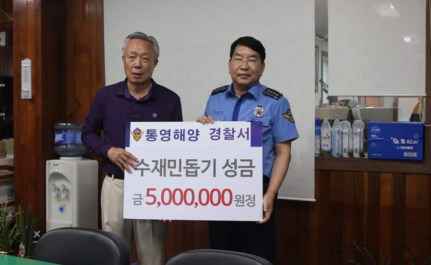 통영해경은 14일 하동군청을 찾아 침수피해를 당한 피해지역 주민을 위해 성금 500만원을 전달하고, 집중호우로 침수피해를 입은 화개장터를 찾아 12~13일 양일간 복구잡업에 동참하였습니다.