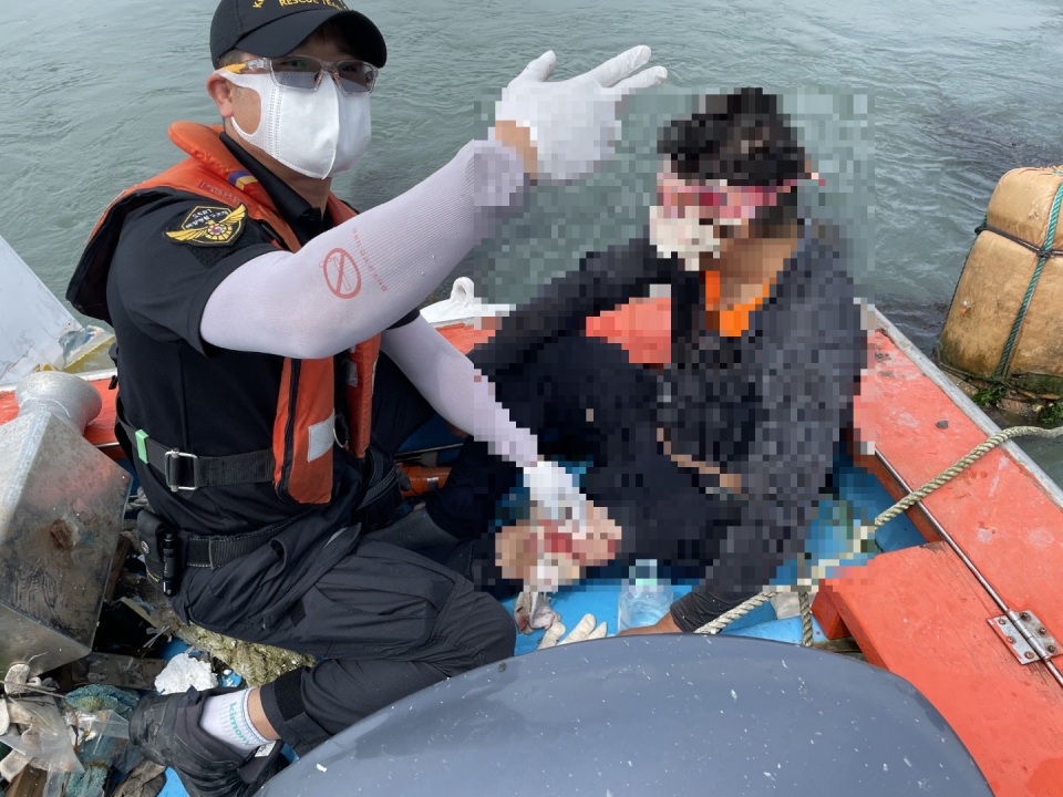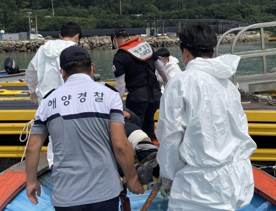 이에 완도해경은 경비함정, 연안구조정, 구조대를 현장에 급파, B호 승선원 2명이 부상을 당한 것을 확인하고 해경구조대원이 직접 B호에 승선하여 응급조치를 실시 하였다