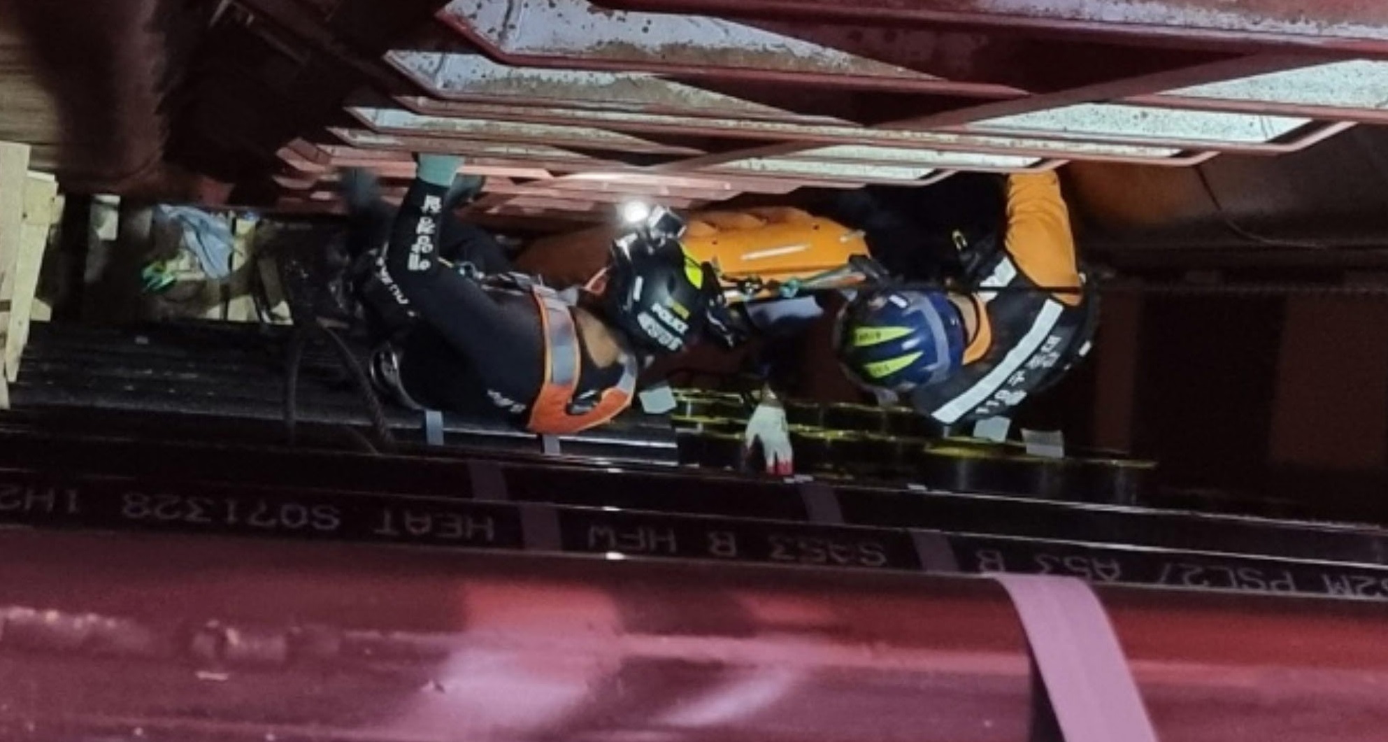 울산해경은 울산항파출소 연안구조정, 순찰차 및 해경구조대를 현장으로 급파하였으며, 선박내 지하3층 화물창 격벽사이 좁은공간에 추락해있는 K씨(67세)를 발견하고 구조대를 투입, 팔 골절 등 부상입은 추락자를 바스켓을 이용하여 119와 합동으로 신속히 구조한 후 인근병원으로 이송하였다.