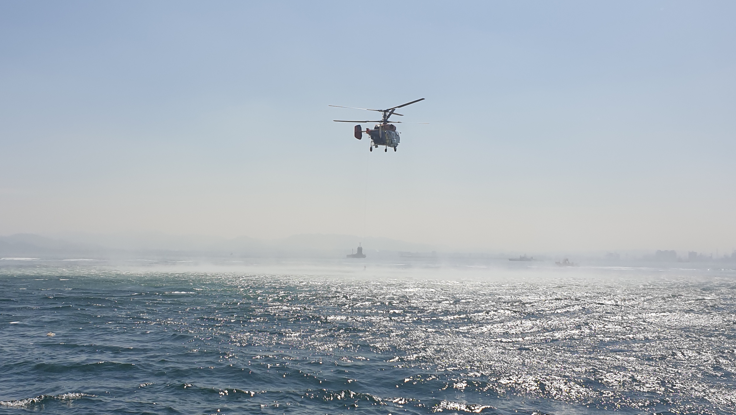 이번 훈련은 현장지휘함(OSC) 중심으로 상황파악·전개, 경비함정과 헬기 구조세력 별 인명구조에 역점을 두고,