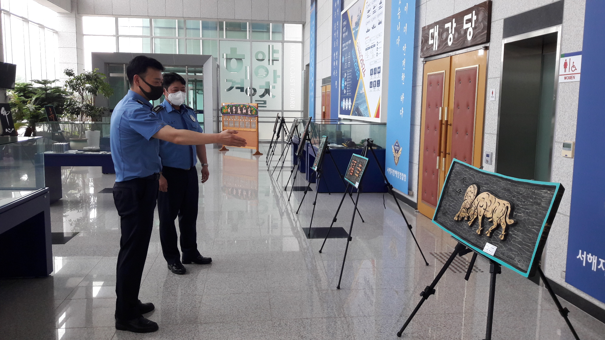 서해지방해양경찰청(청장 이명준) 서각동호회가 회원들의 작품을 청사 내에 전시하며 직원 간 소통과 공감이 있는 공직사회 만들기에 앞장서고 있다.