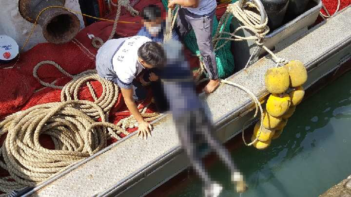 A씨는 어선 계류 후 육상 안벽으로 넘어오다 미끄러져 바다로 떨어져 허우적거리다 동료 선원이 던져 준 호줄을 붙잡고 구조를 기다렸다.