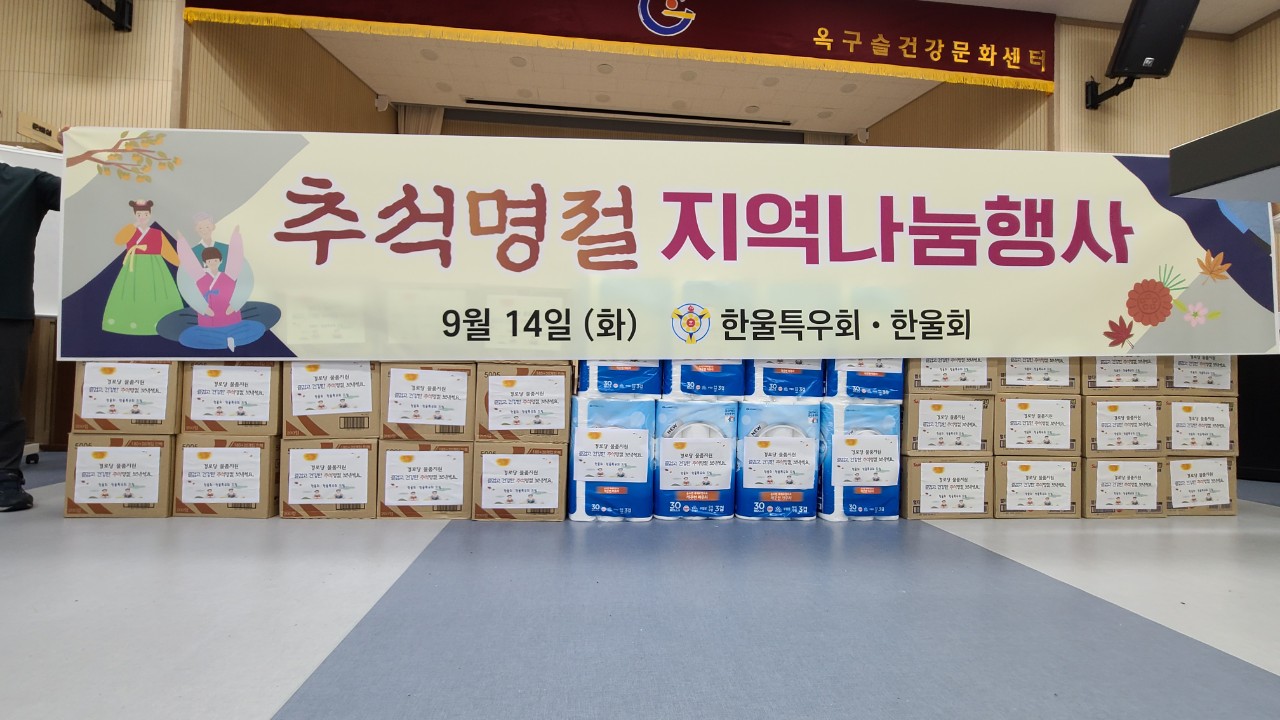 옥곡면 옥구슬 건강 문화센터에서 금일(9월 14일) 오전 8시 한울 특우회(회장 정현국) 한울회(회장 류규열)는 지역 나눔 행사를 가졌다.