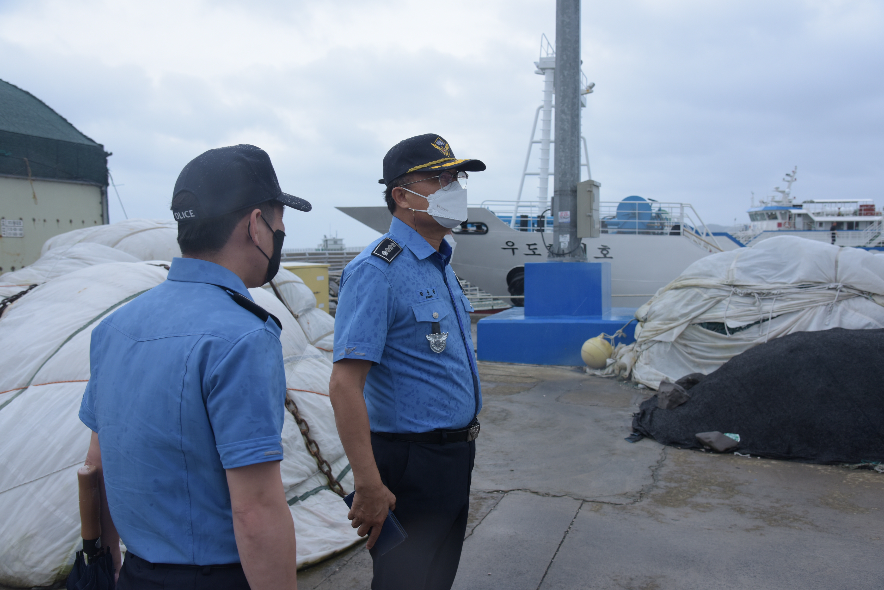 서귀포해경에 따르면 이날 성산항과 성산여객터미널을 방문하여 항·포구 시설물과 피항선박의 안전 상태 등 태풍 대응 태세를 확인하고, 추석 연휴 유·도선 및 여객선 이용객 증가에 따른 안전관리 실태를 점검했다.