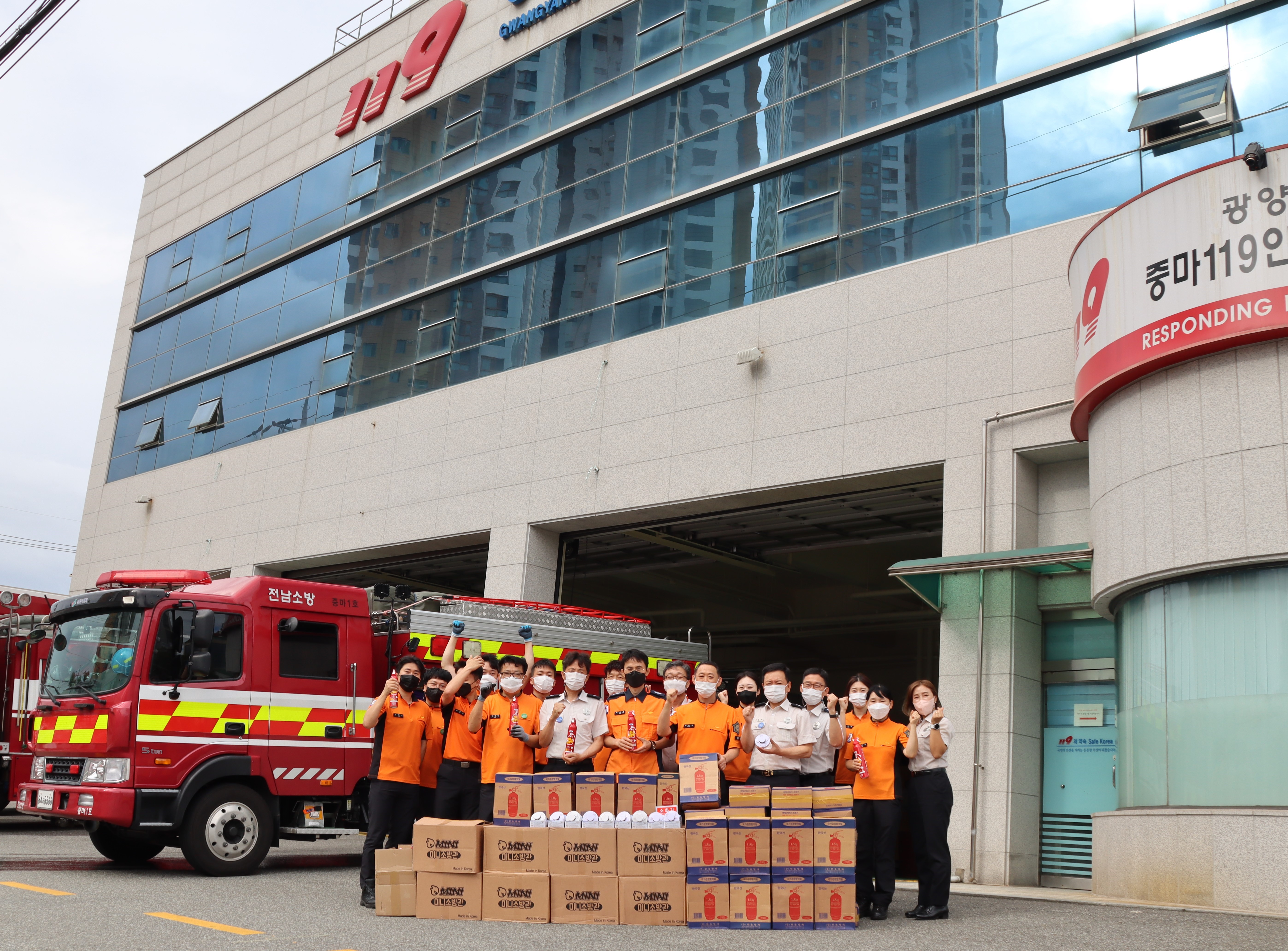 [해륙뉴스1}서정민기자=광양소방서(서장 최현경)는 추석 명절을 맞아 주택화재로 인한 인명피해를 최소화시키기 위해 주택용 소방시설인 소화기와 단독경보형감지기를 전직원이 자발적으로 동참하여 공동구매하다.