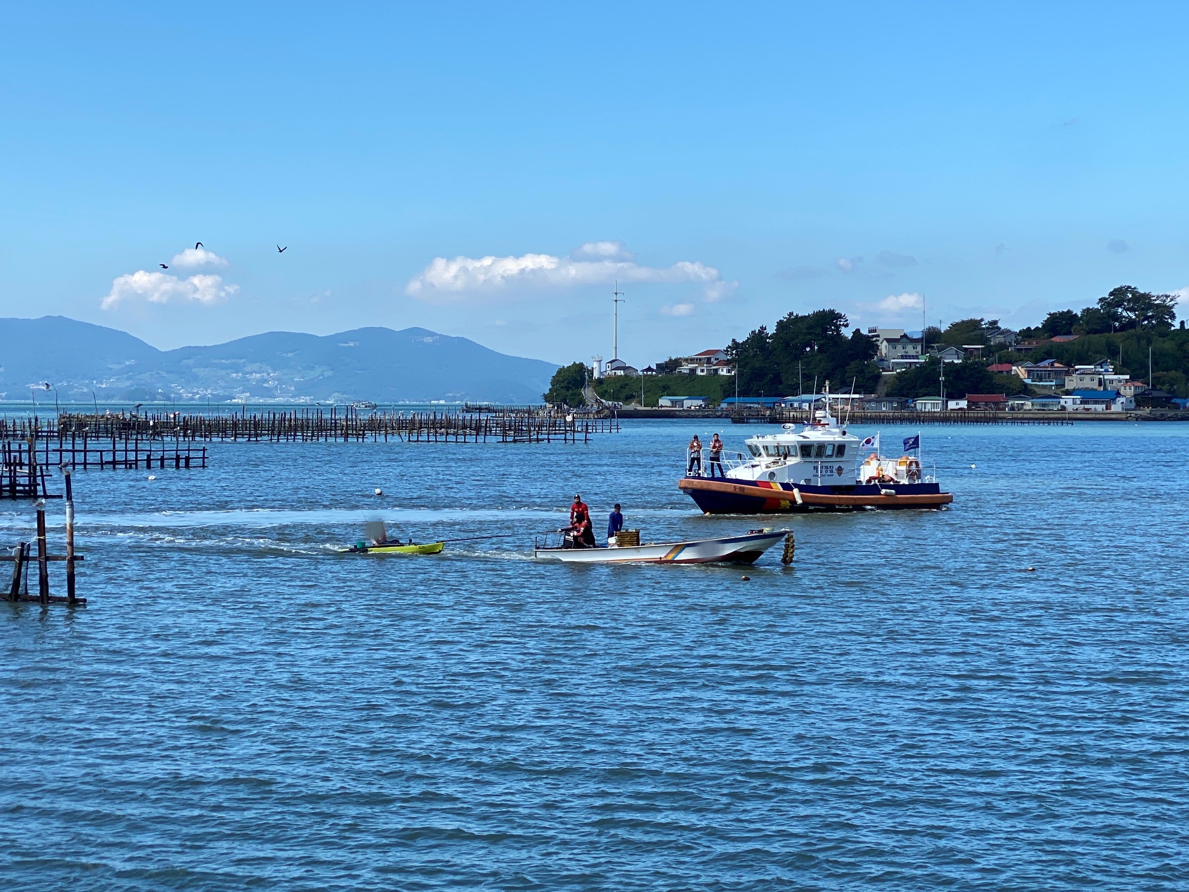 사천파출소는 즉시 연안구조정을 이동시켜, 오전 10시 35분경 현장에 도착해 고립된 카약을 구조하였다.