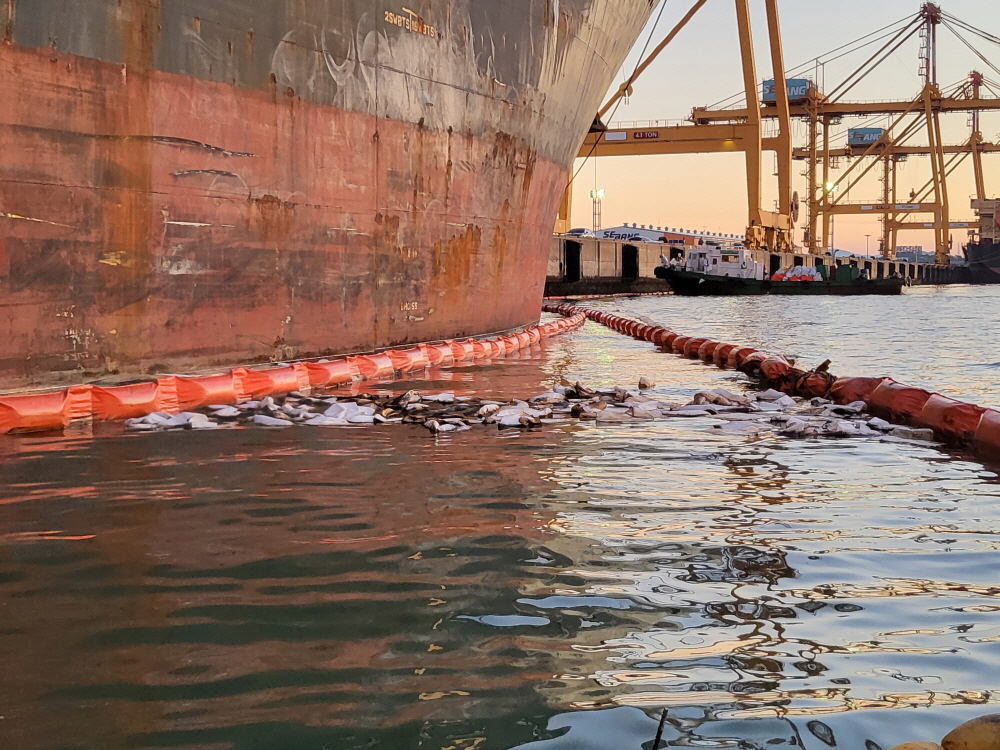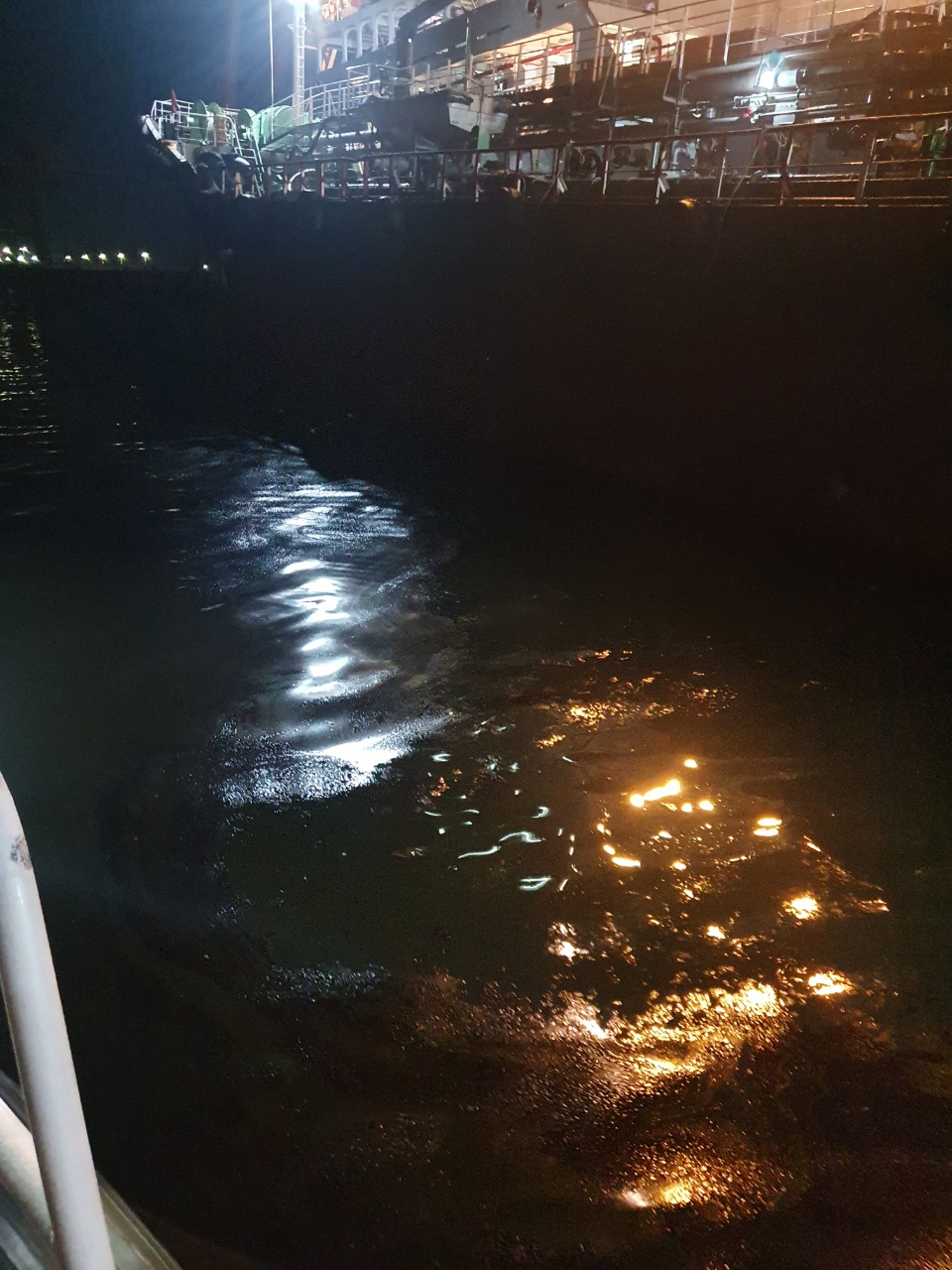 신고 접수한 여수해경은 방제정과 경비함정 10척, 해양환경관리공단 1척, 민간방제선 14척이 사고 현장에서 밤샘 방제작업을 벌이고 있으며, 기름유출된 해상에는 갈색 및 검은색 기름띠가 정박선박 주변으로 길이 8m, 폭 8m 등 2개소와 부두 암벽 안쪽에서 기름띠가 부분적으로 발견되고 있다.