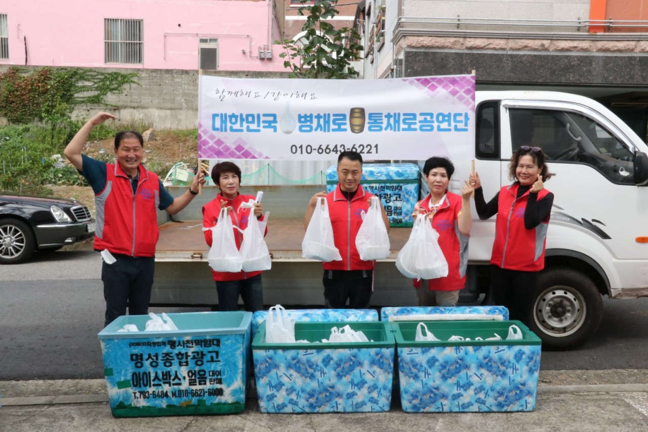대한민국병채로통채로공연단(회장 이병채)은 4주4색 즐거운 테마 자원봉사에 참여하여 ‘밥상 나눔/함께해요/같이해요’란 주제로 추석맞이 백숙 삼계탕 나눔전달 행사를 9월 18일 진행했다.