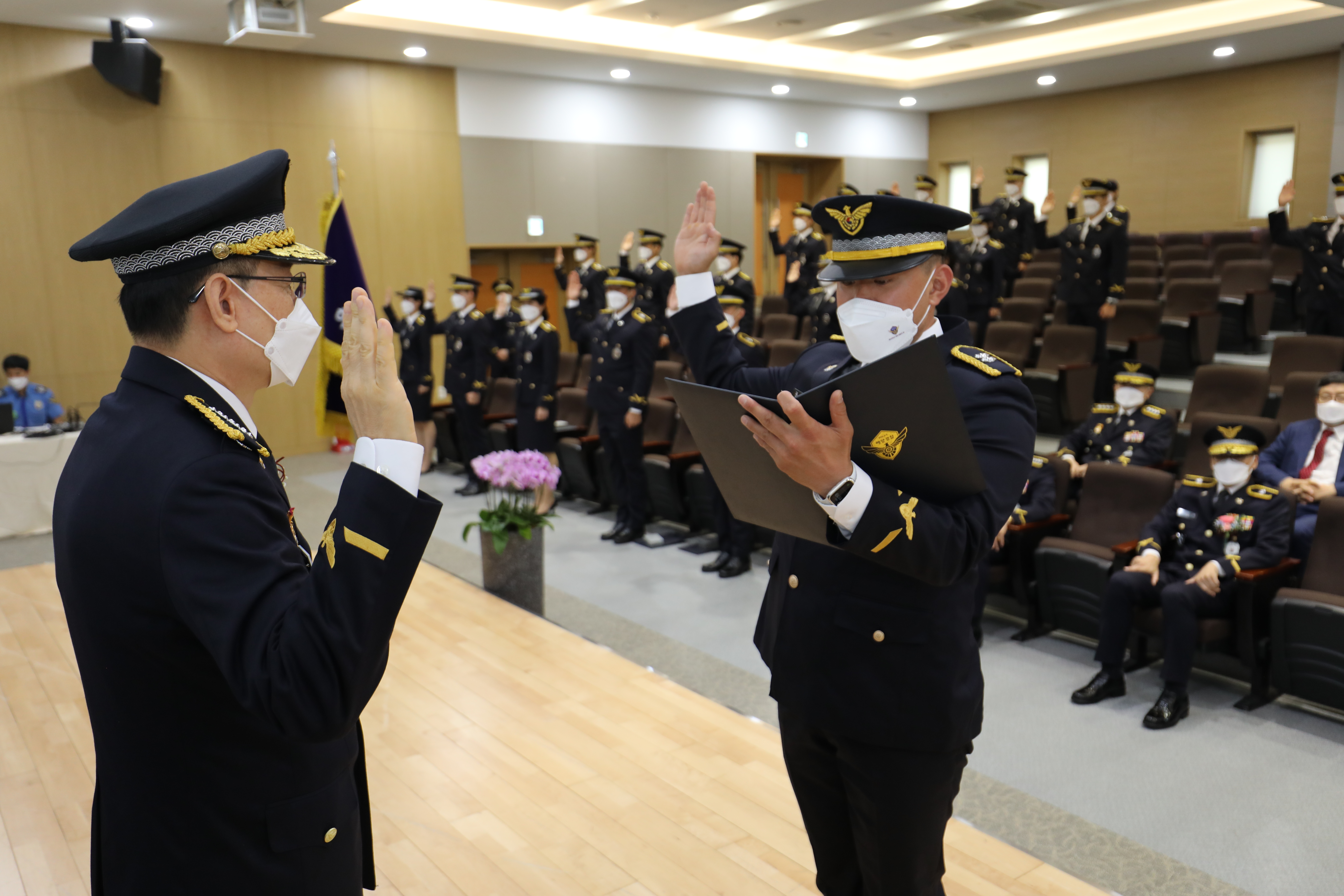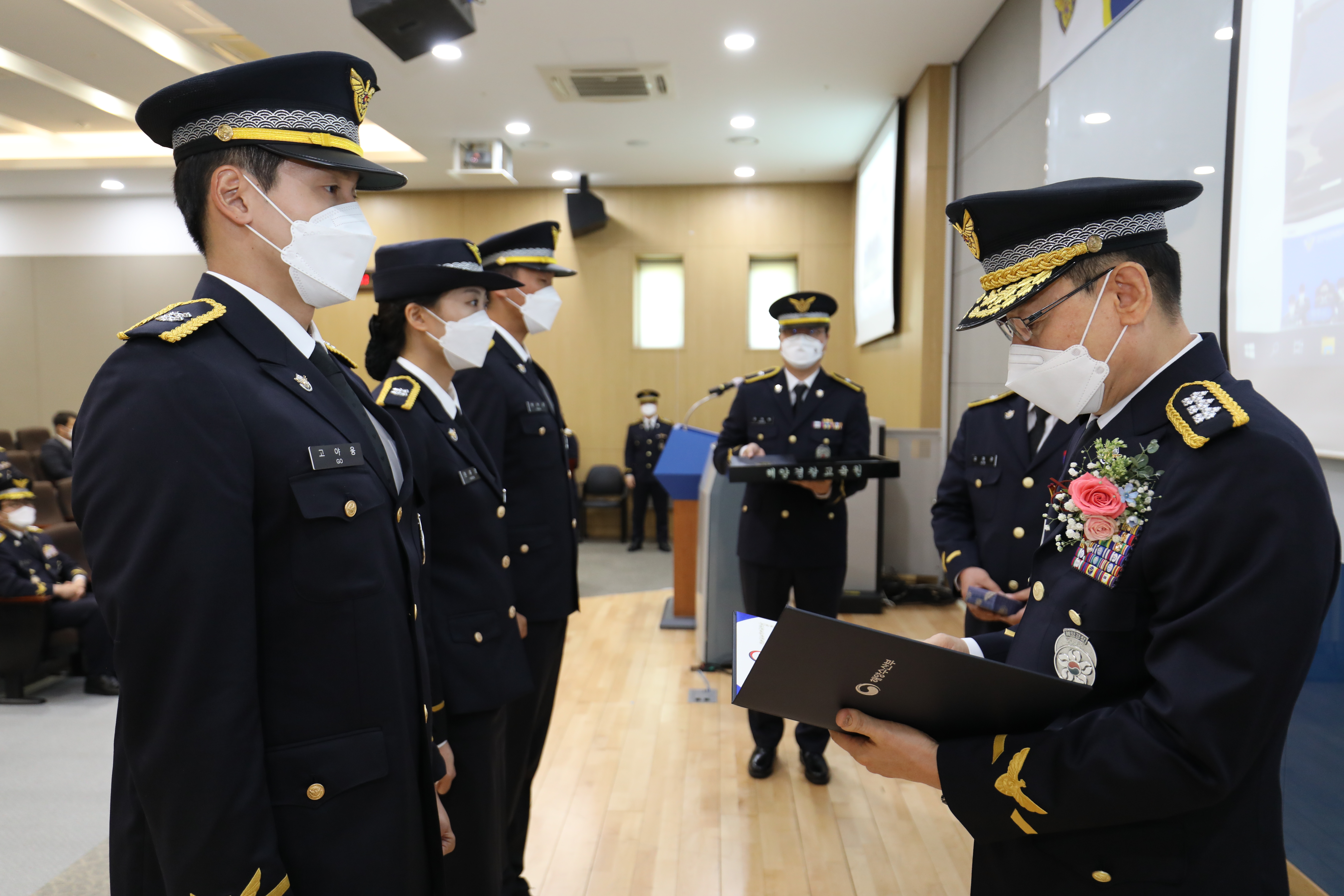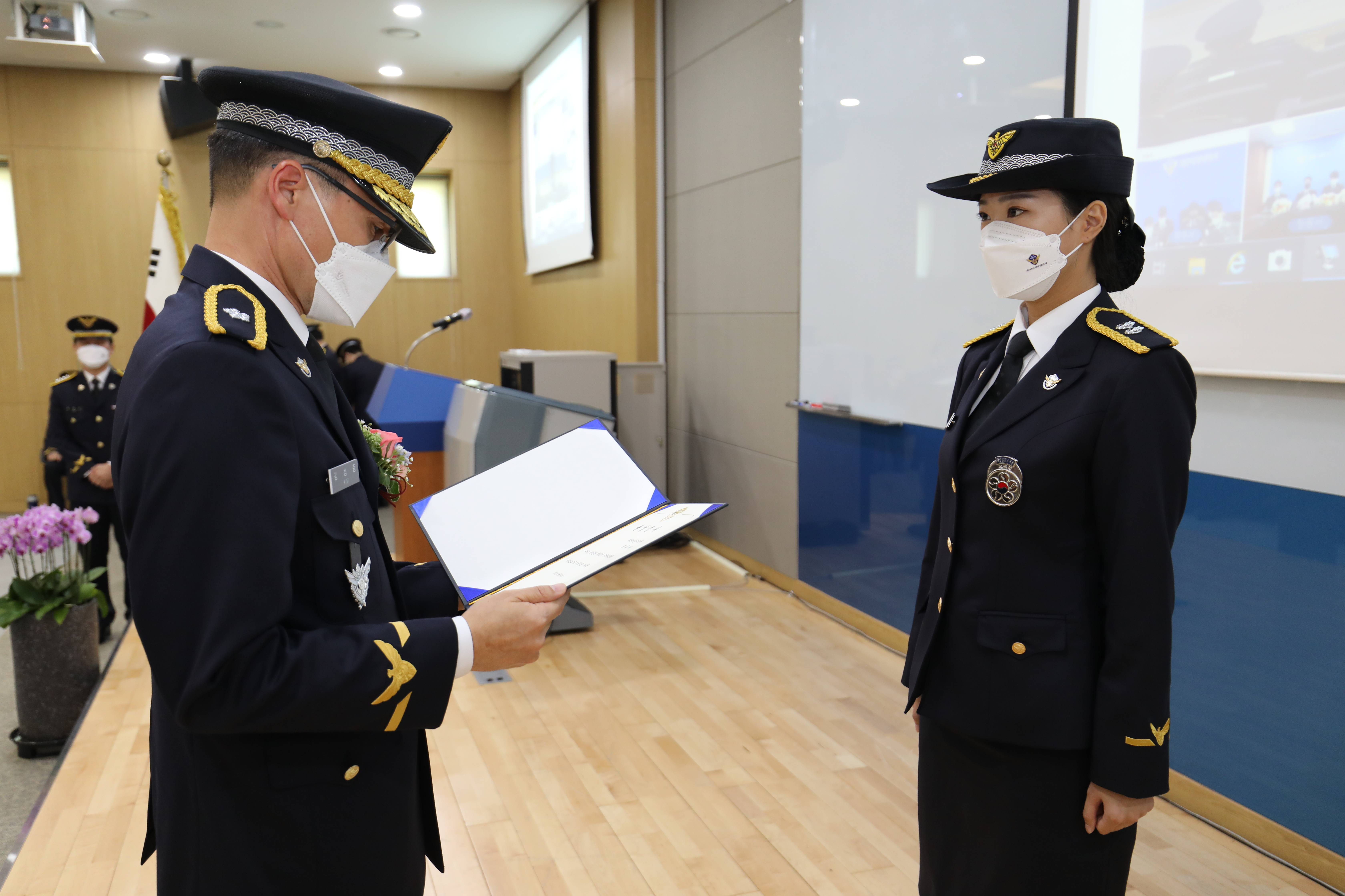 김홍희 해양경찰청장은 축하영상을 통해 “해양경찰교육원의 원훈(院訓)인 명예·용기·헌신을 바탕으로, 국민의 안전을 책임지며 현장에 강한, 신뢰받는 미래 해양경찰의 핵심 주역으로 성장해 줄 것”을 당부했다.