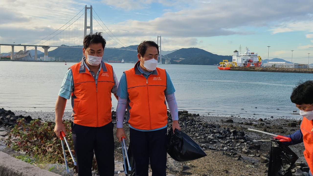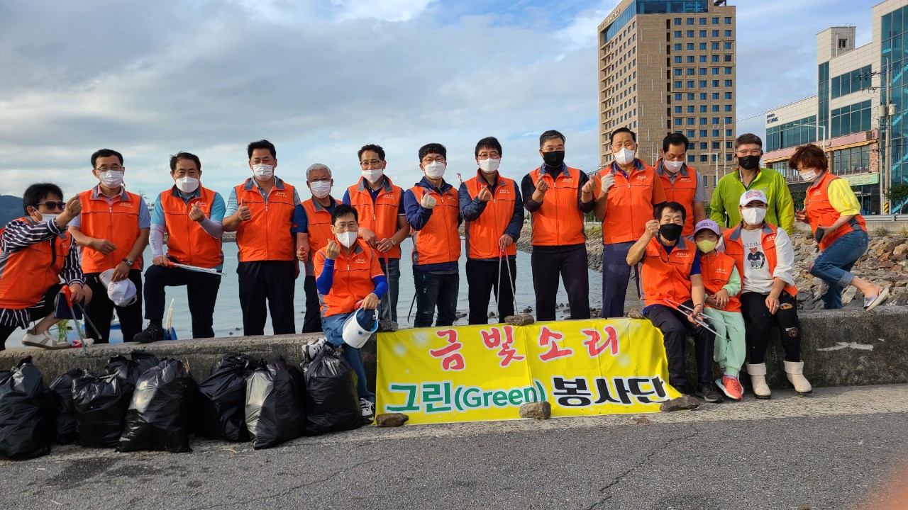 * 금일(9월 25일) 토요일 ”금빛소리 그린 봉사단“(단장: 김현이 / 광영동)이 “광양 바다는 금빛소리” “금빛 소리 하면 광양 바다”를 광양시민들 사이에 연상시켜 자리 잡은 가운데 매주 9월 마지막 토요일 광양항 근처 해안가 청소로 봉사를 하였다.