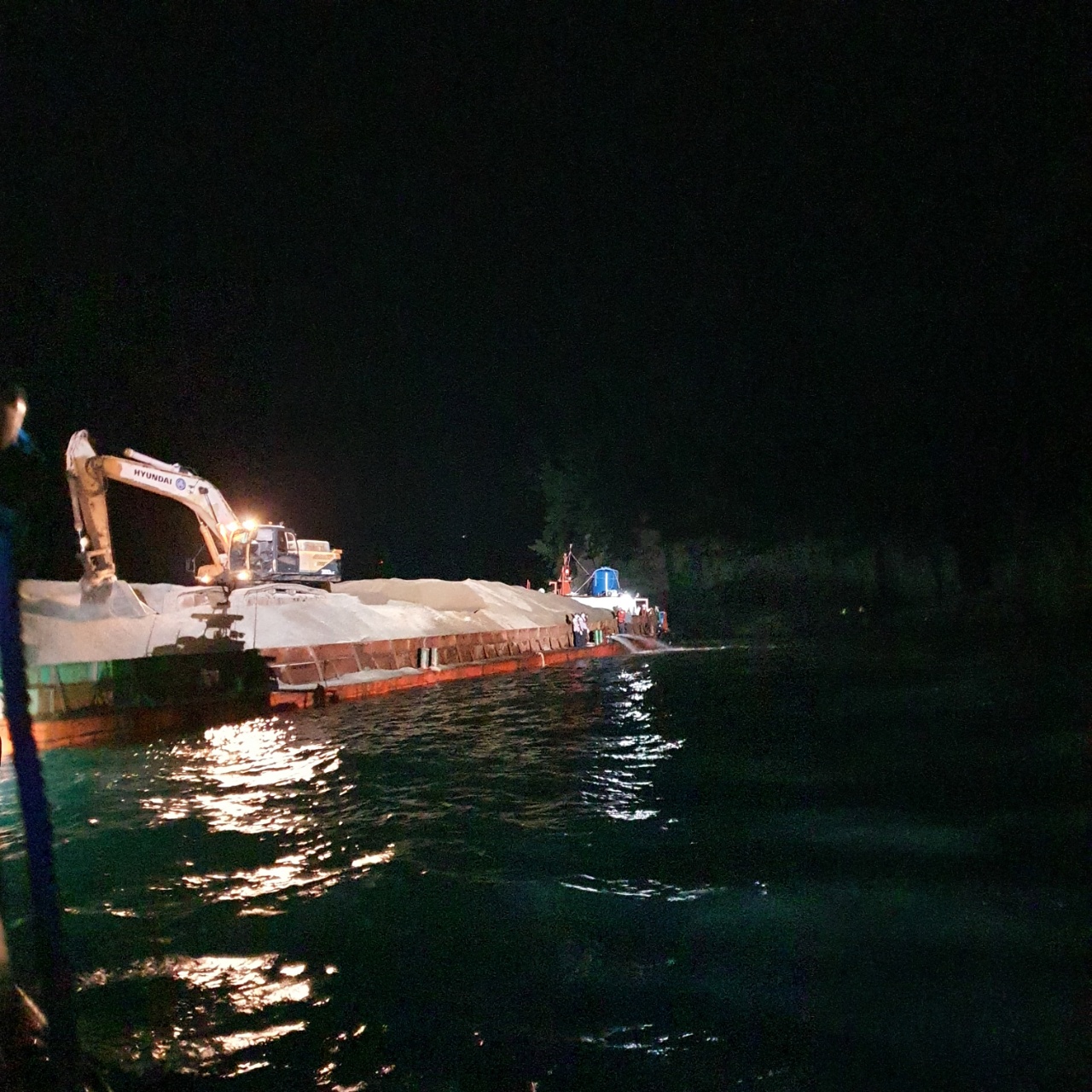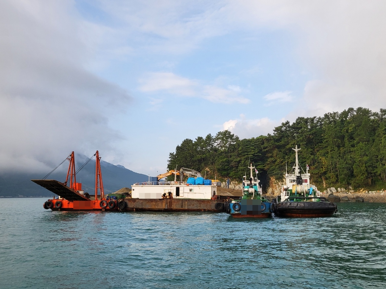 또한 부선 A호에 적재된 모래를 이적하기 위해 다른 부선을 동원해 이적작업도 함께 진행 중이다.