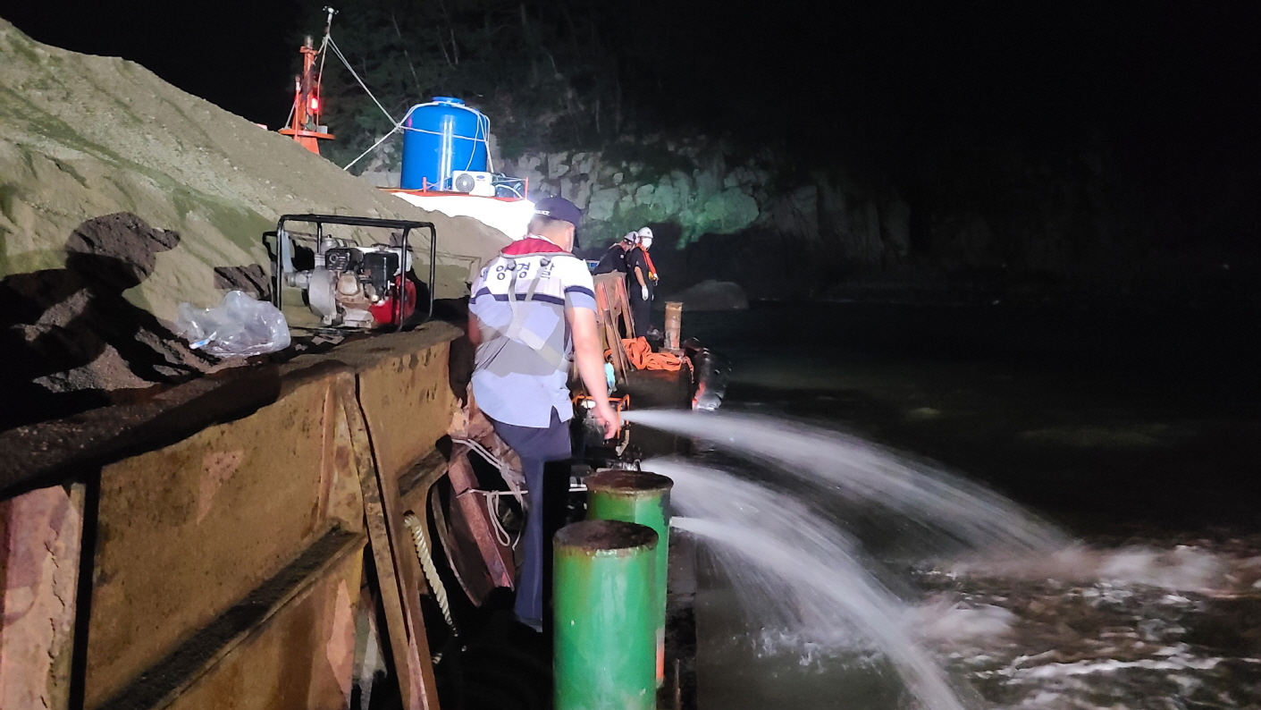 부양시키고 배수 장비와 인력을 추가하여 밤샘 배수작업을 진행하고 있다.