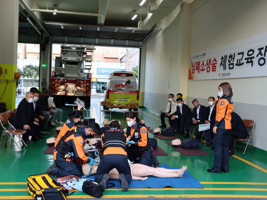 또한 의원들은 중마 119안전센터를 방문하여 최일선에서 고생하는 현장대원의 목소리를 듣고, 심정지 환자가 발생했을 때 소중한 생명을 살리기 위해 최선을 다하는 구급대원들의 현장응급처치 시연 및 심폐소생술을 직접 체험하고 현장에서 고생하는 직원들의 노고를 치하하였다.