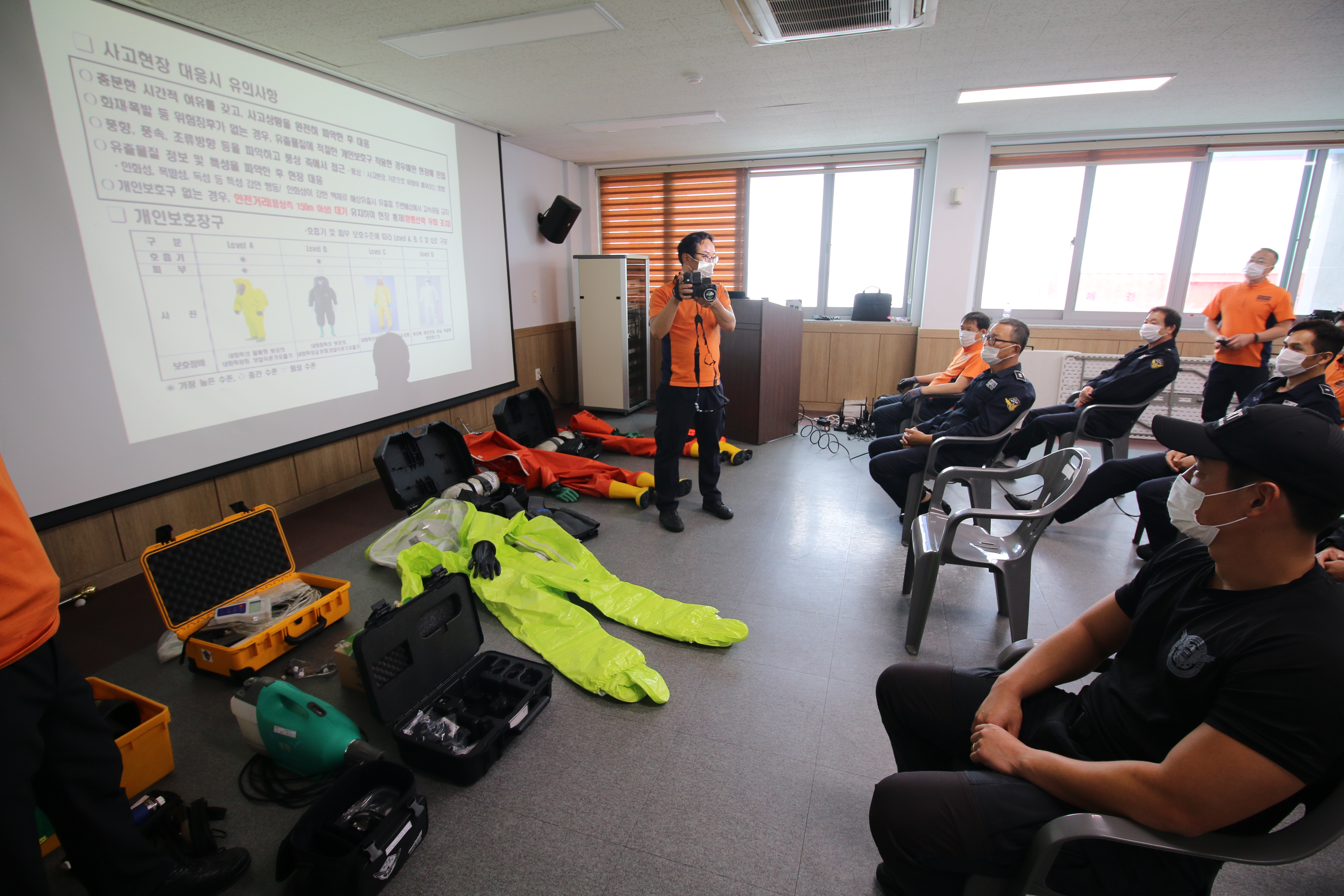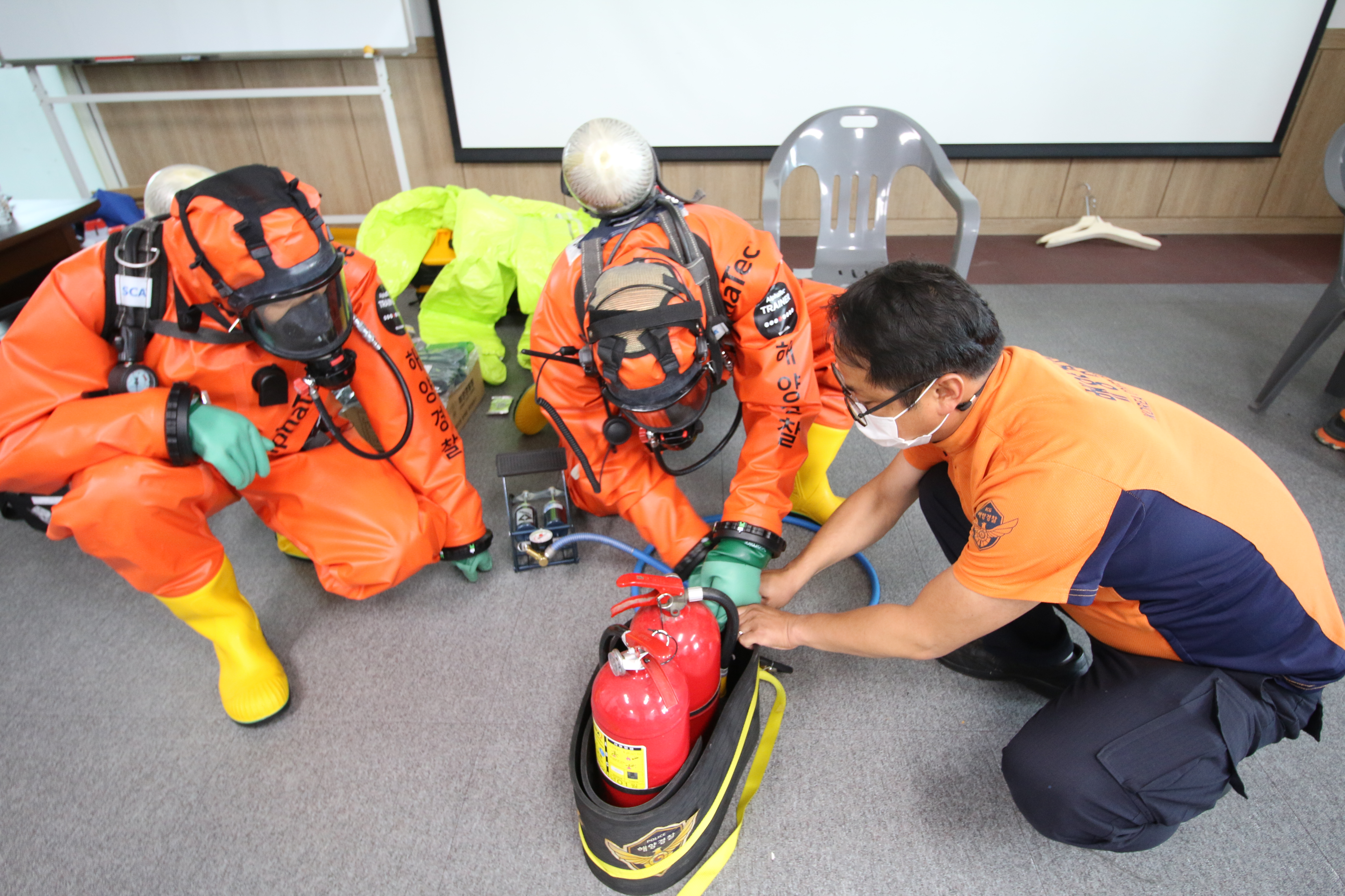 특히 가스탐지, 가스누출 봉쇄·제독 장비 및 열화상카메라를 활용한 인명구조에 초점을 두고 진행되었다.