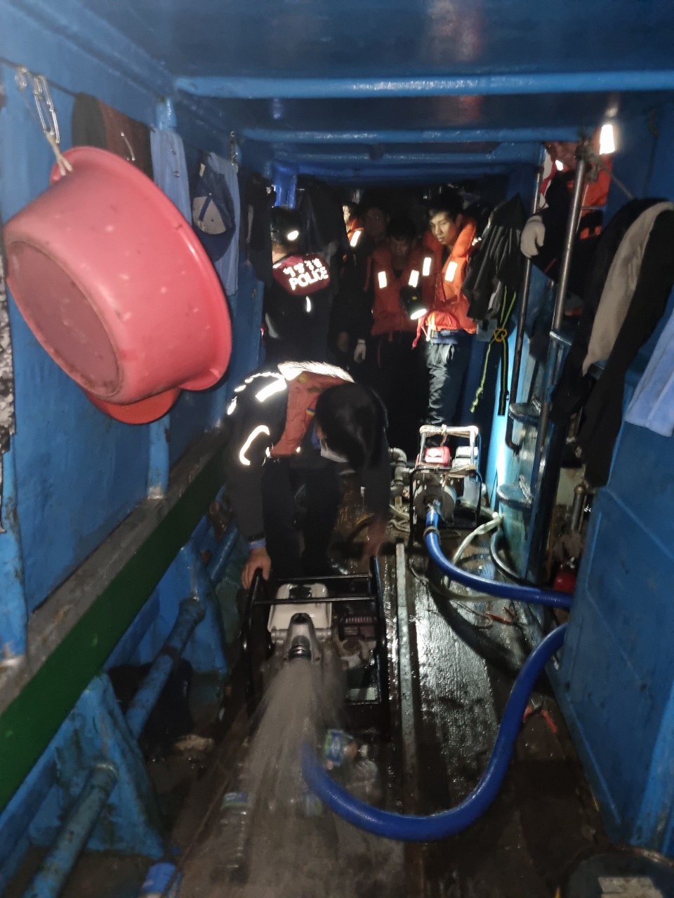 서귀포해경은 즉시 함정, 연안구조정, 구조대를 급파하여, 오전 00:59 화순파출소 연안구조정이 현장 도착, 출동한 경찰관이 침수선박 A호에 승선하여 선원과 선박의 안전상태를 확인한 후 신속히 배수펌프를 가동하며 구조를 실시하였다.