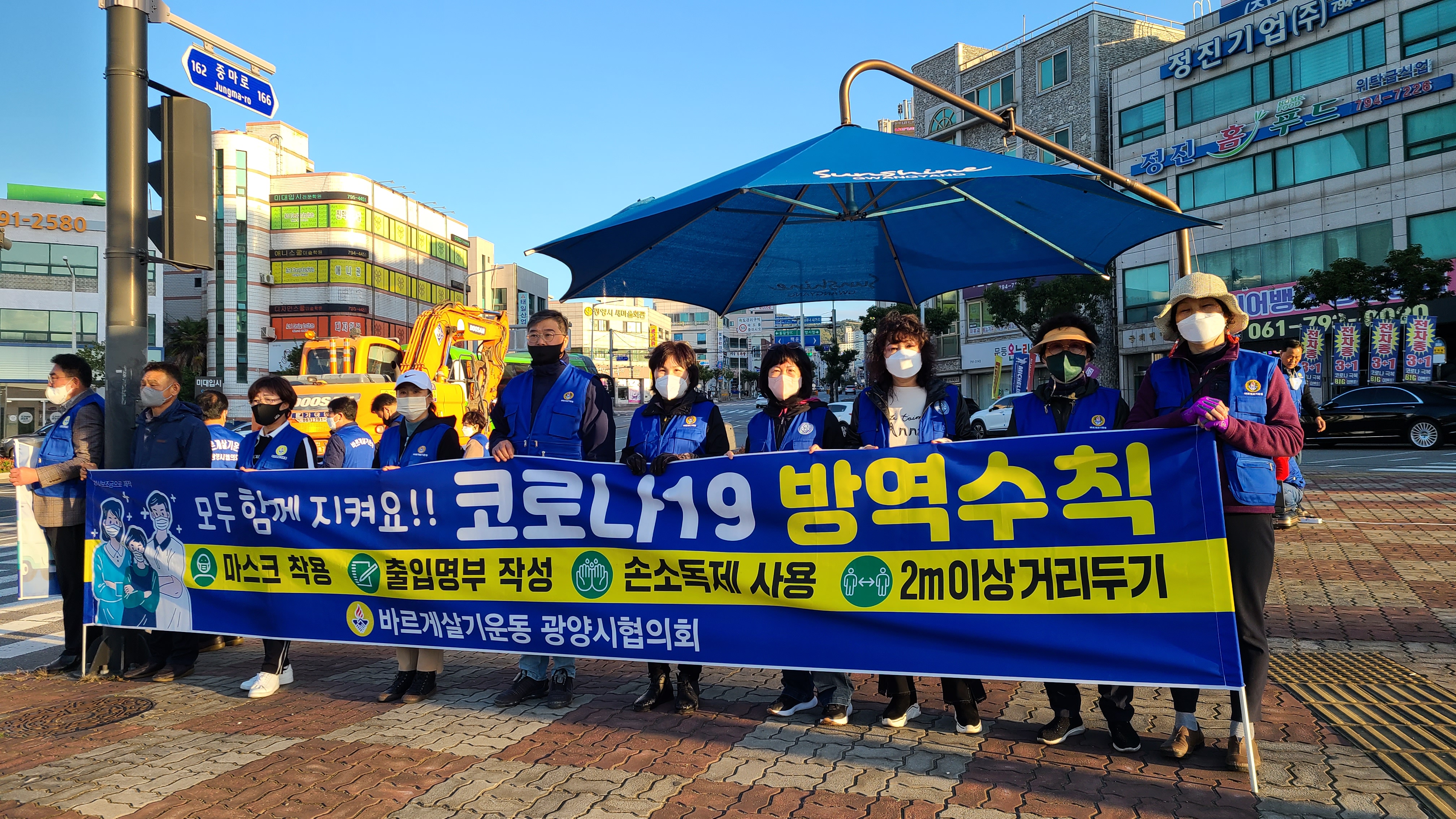 [해륙뉴스1]유경열 기자=바르게살기운동 광양시협의회는 코로나 19 방역수칙과 교통안전 캠페인을 중마동 컨테이너부두사거리 등에서 펼쳤다.