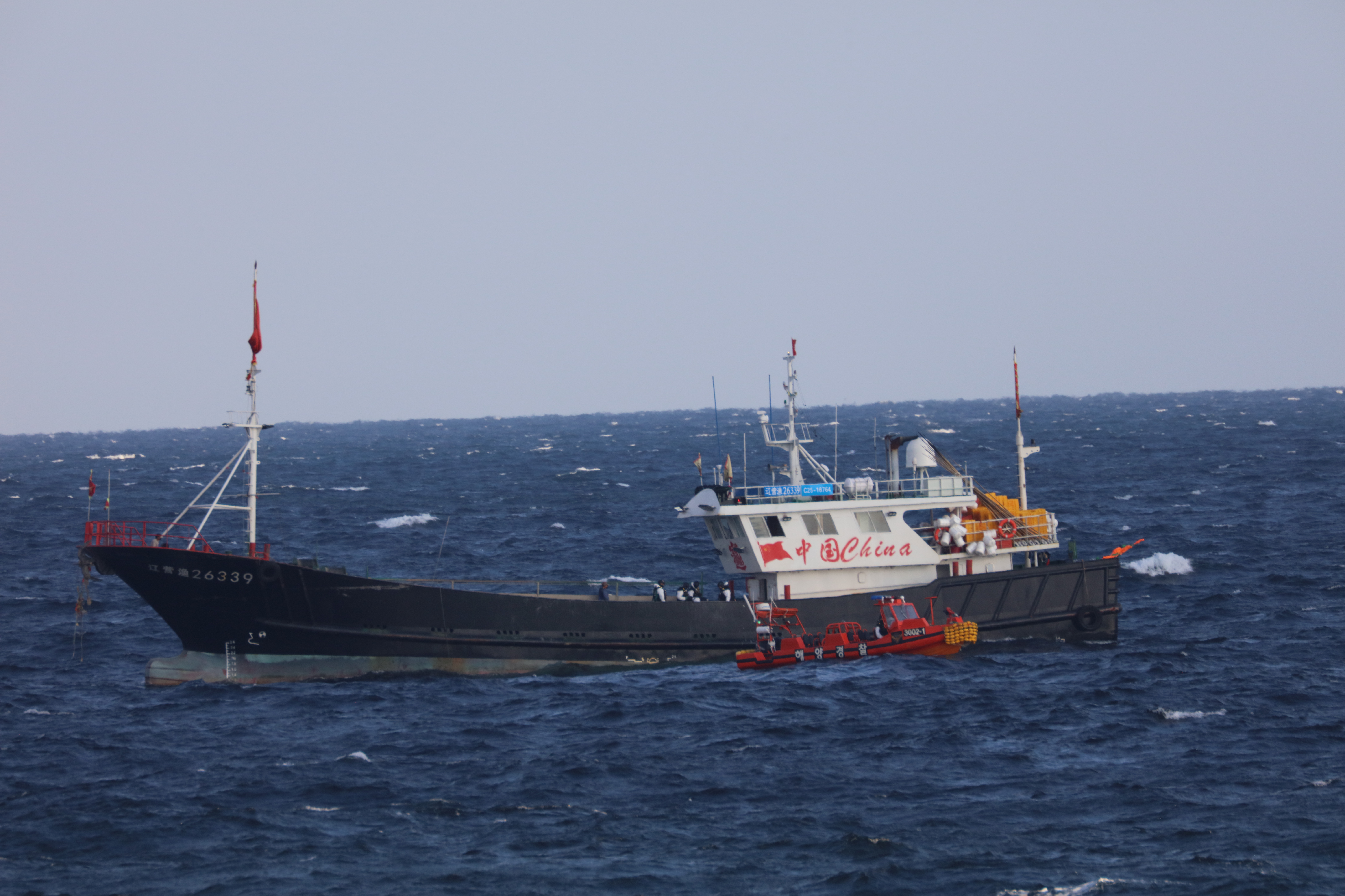 2일(화) 오전 6시 15분경 차귀도 남서쪽 약 126km(대한민국 어업협정선 내측 약 10.6km) 해상에서 불법조업 의심되는 중국어선 A호(유망/149톤/영구선적/승선원11명), B호(유망/149톤/영구선적/승선원11명)를 발견하고 인근 해역을 경비 중이던 제주해경 3000톤급 경비함정을 이동시켜 7시 28분경 해상특수기동대가 승선한 고속단정 2척으로 해상 검문검색을 시행하였다.