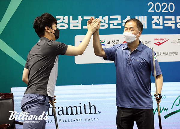 대회 준결승전에서 충북의 오성규-강자인 조를 꺾고 올라온 김행직-최호일 조는 5이닝까지 1:8로 끌려갔지만 7이닝에서 김행직의 큐 끝이 살아나며 8:5로 뒤쫓았다.