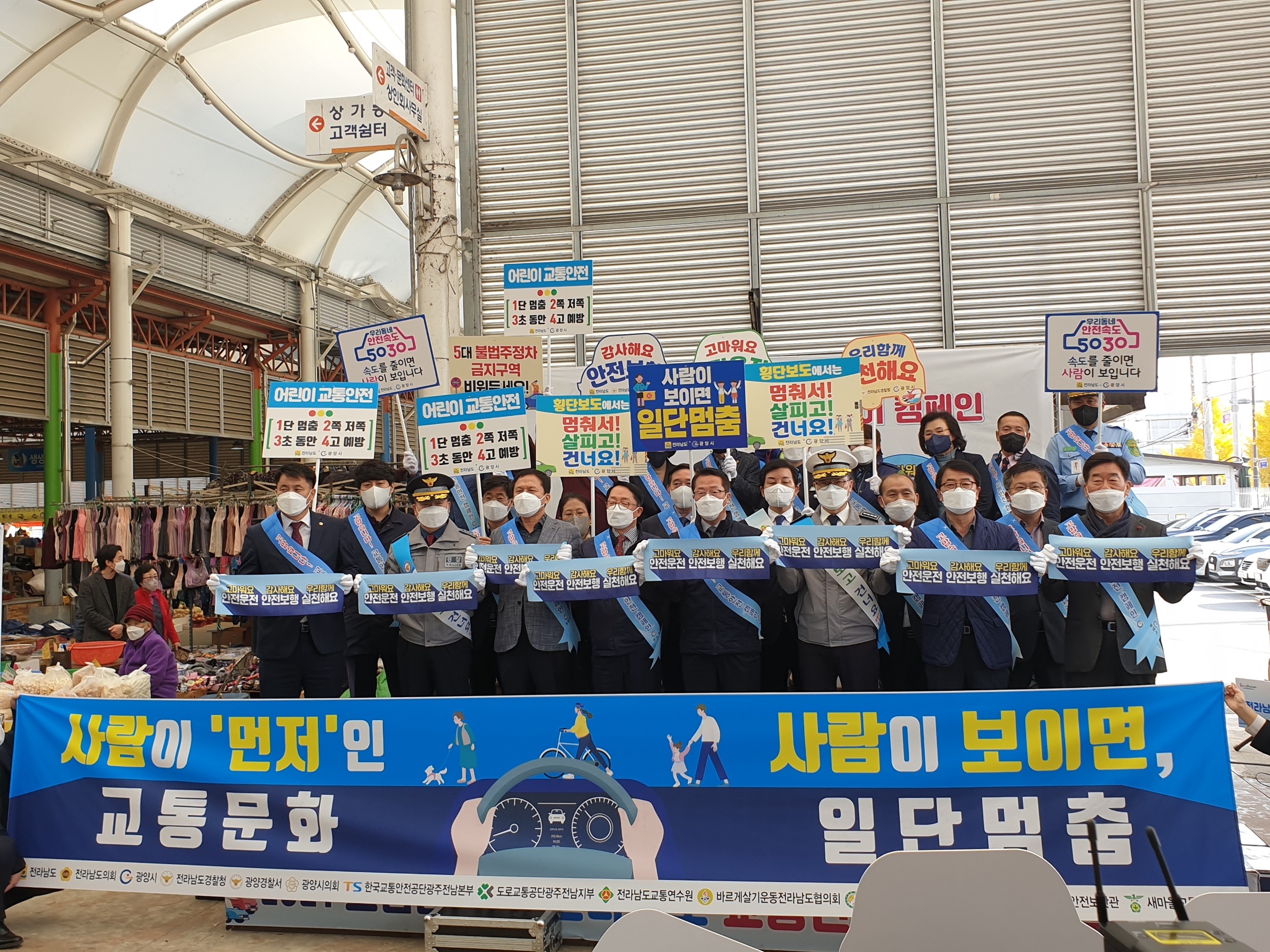 광양시와 전라남도는 교통 관련 관계기관과 민간단체가 참여해 교통사고에 대한 경각심을 고취하고 선진 교통안전 문화를 정착시키기 위한 ‘고맙습니다’ 교통안전 릴레이 캠페인을 금일 16일 광양 5일시장에서 실시했다.