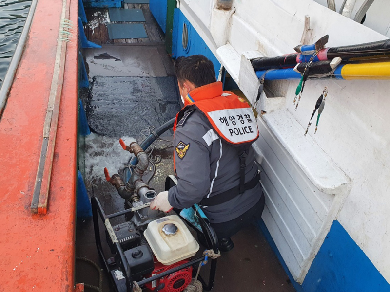 이에 제주해경은 인근 해역을 경비 중이던 경비함정, 구조대, 제주파출소 연안구조정 등 구조세력을 긴급 출동, 오전 7시 2분경 현장에 도착 확인해보니 기관실이 약 1m 정도 침수된 상태로 계속 침수 중인 것을 확인하고 2차사고 발생 대비 침수 어선을 세화항 바깥쪽 약 100m 예인 후 에어밴트, 연료밸브 등을 봉쇄하고, 경비함정의 배수펌프와 잠수펌프 이용 기관실 배수 작업을 실시하여 기관실 침수고가 약 15cm까지 침수고가 줄어들자 안전하게 세화항 예인 조치 후 오전 10시 20분경 세화조선소에 상가완료하였다.