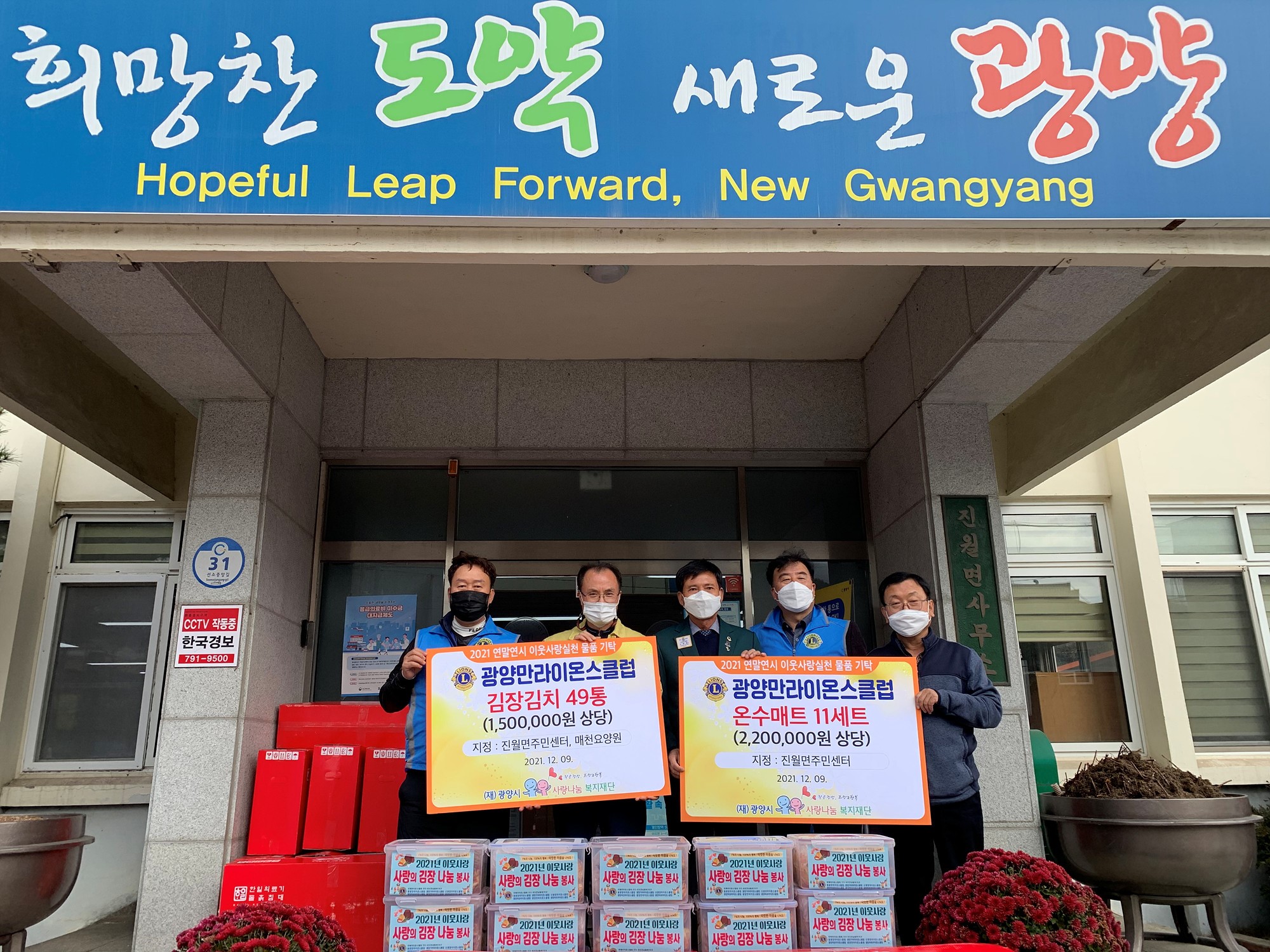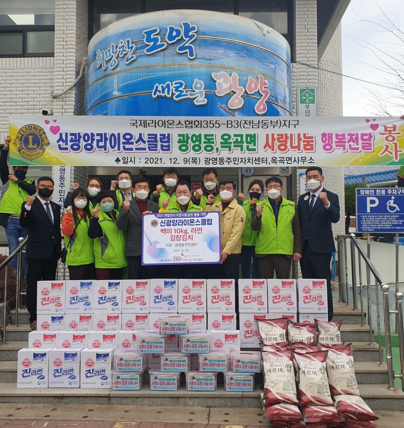 물품을 전달받은 지역에서는 “바쁘신 와중에도 김장 봉사와 생필품전달에 참여해주신 모든 분들께 감사드리며 신광양 라이온스클럽(김성렬회장).광양만 라이온스클럽(허양표회장)광양 마로라이온스클럽(강동수회장)금호동 주민자치위원회(조서윤자치위원장)광영동 이루는 감리교회(서두수담임목사)는 봉사 정신을 바탕으로 지역사회와 소통하고, 항상 우리 이웃을 살피며 나눔을 실천하겠다”고 전했다.