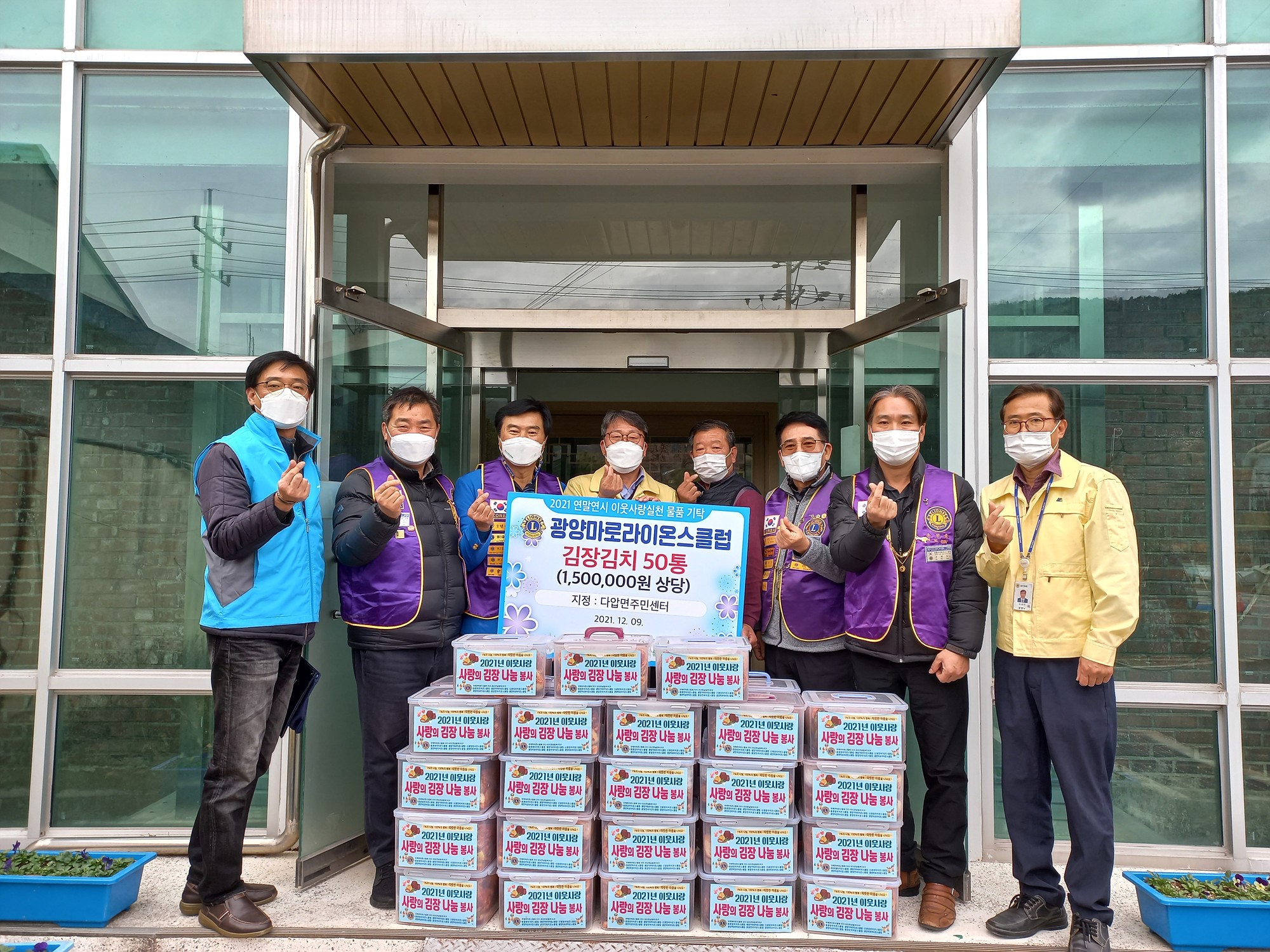 광양 마로라이온스클럽(강동수회장)금호동 주민자치위원회(조서윤자치위원장)광영동 이루는감리교회(서두수담임목사)는 12월9일과 10일 양일에 이어 지역의 어려운 이웃을 위해 손수 김장김치와 생필품을 전달해 지역의 미담으로 이어지고있다.