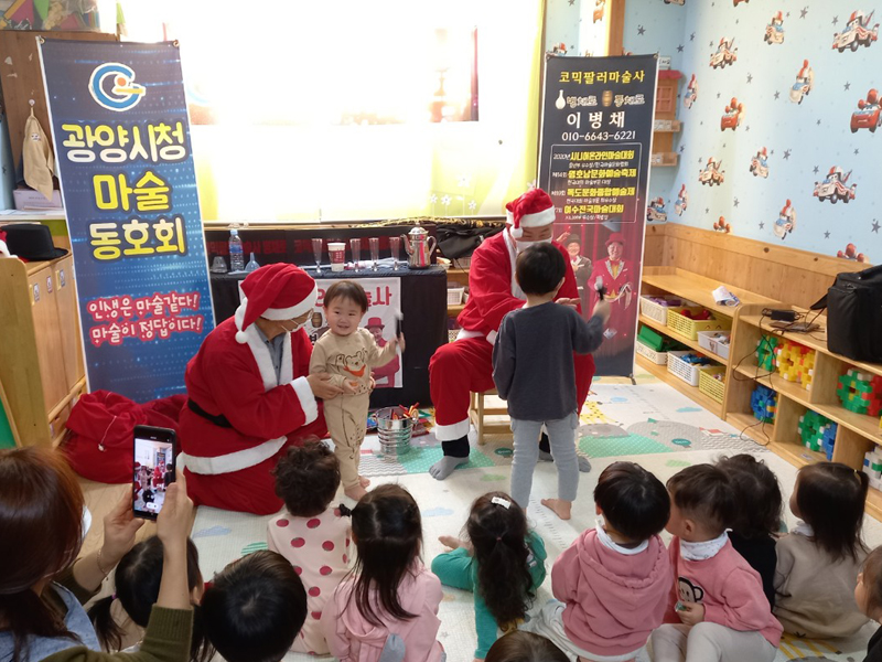광양시청마술동호회(회장 탁우경) 회원들이 12월 13일 중마동 우림아이어린이집에서 마술재능봉사로 아이들에게 웃음을 선사했다.