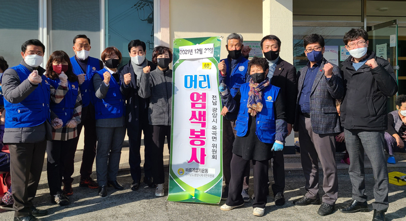 바르게 살기운동 광양시 협의회(회장 김영조. 여성회장 김순호)는 23일 옥곡면 위원회 하창완회장 송정옥 여성회장과 함께 옥곡면 신기회관에서 어르신 머리염색봉사 활동과 방역활동을 하였다.