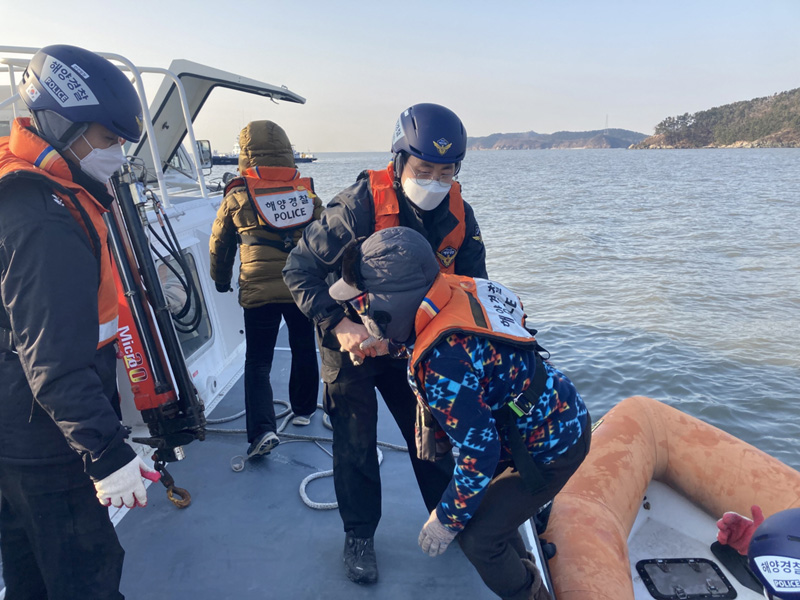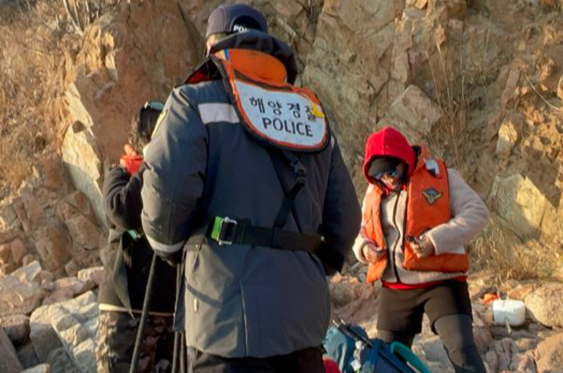 현장에 출동한 공기부양정은 바위 등으로 접근이 곤란하여 고무보트를 내려 A씨(여 60대) 등 2명을 구조 편승하여 안전지역에 하선 조치했다.