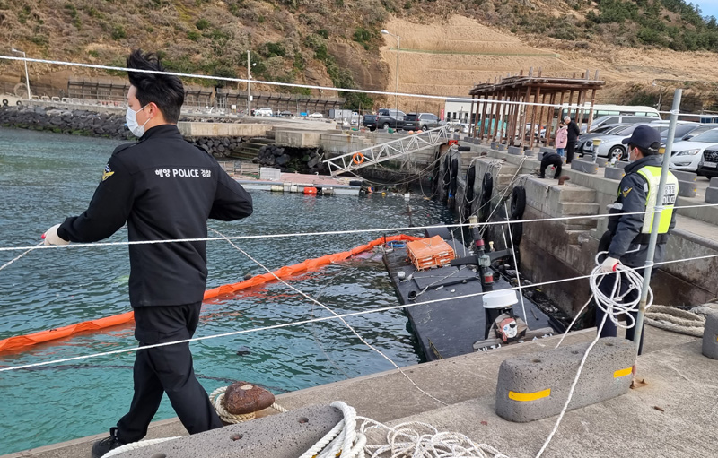 어제 낮 제주시 한경면 고산포구를 순찰하던 중 침수 중인 선박을 발견하였으나, 오일펜스 설치 등 신속한 대처로 해양오염 피해가 발생하지 않았으며 추후 법정관리인을 통하여 육상으로 인양할 예정이라고 밝혔다.