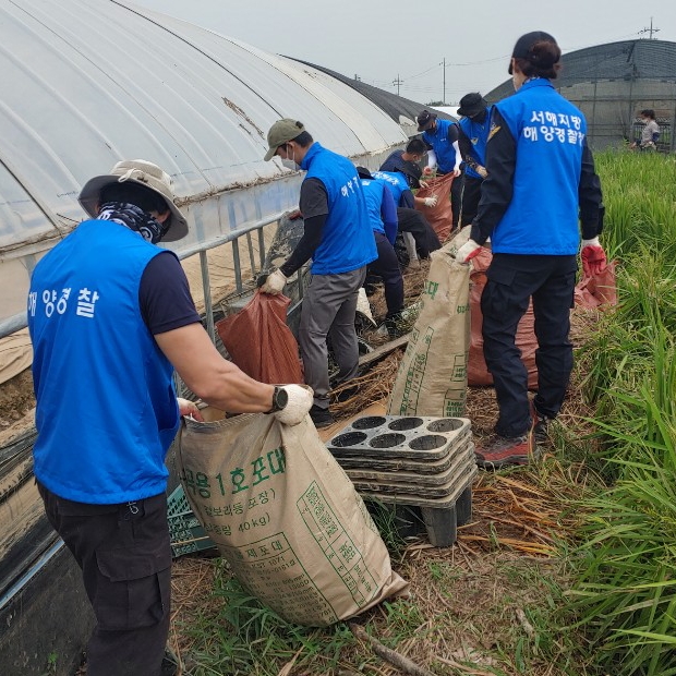 해양경찰로부터 뜻하지 않은 봉사활동 혜택을 받은 농민 박모씨(50)는 “집과 하우스가 모두 물에 잠기는 피해를 입은 후 어떤 일도 할 수 없었는데 이렇게 말끔하게 치워줘 이제 농사를 다시 지을 수 있게 됐다”며 감사를 전했다.