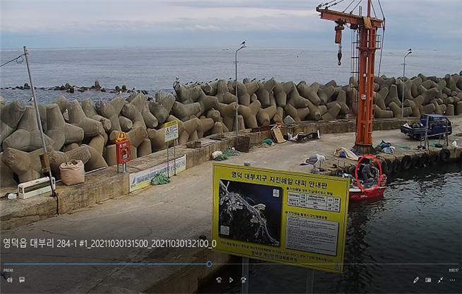 □ “한 남성이 긴 장대를 이용하여 부둣가에 설치된 CCTV를 돌리는 모습입니다. 부두에 계류된 선박에 침입하여 낚시대와 선박 물품을 훔치기 전 이러한 행위를 하였는데요. 이 또한 고스란히 CCTV에 촬영되어 있었습니다.”