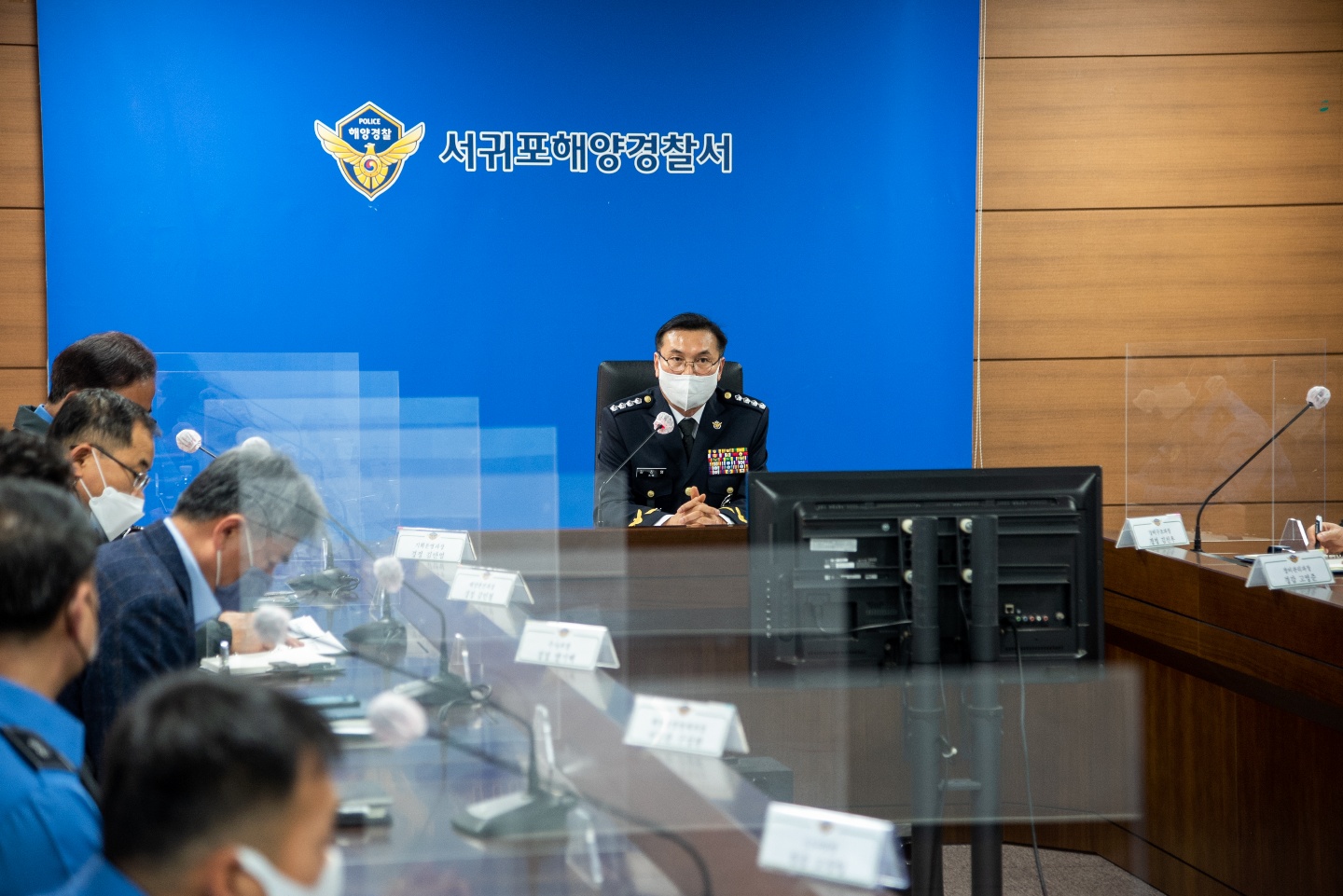 서귀포해양경찰서에 따르면, 24일(월) 오전 제14대 서귀포해양경찰서장으로 취임한 김진영 총경은 코로나19 확산 상황을 감안해 별도의 취임식을 생략하고 회의실에서 과·계장들과 가진 취임 인사를 통해 “모든 역량을 집중하여 종합해양안전망을 구축, 해양사고 예방에 전력을 다하자”라고 당부하고,“소통과 공감을 바탕으로 화합된 조직문화를 만들어 가자”라고 말했다.