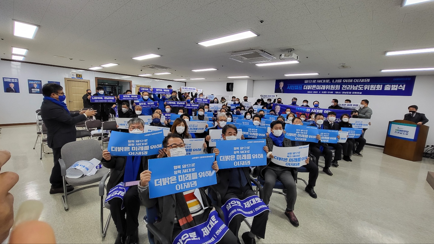 어제 출범식을 진행한 시민캠프 [더밝은미래위원회] 전남위원회는 도내 온·오프라인에서 이재명 후보 지지 활동을 하는 시민들이 모여 만든 풀뿌리 조직으로 도내 각 시군위원회 위원장단과 전문위원회 위원장단이 참석했고, 광주시·전북도·대구시 위원장단도 자리를 함께해 연대하여 더 큰 대선 승리 의지를 다졌다.