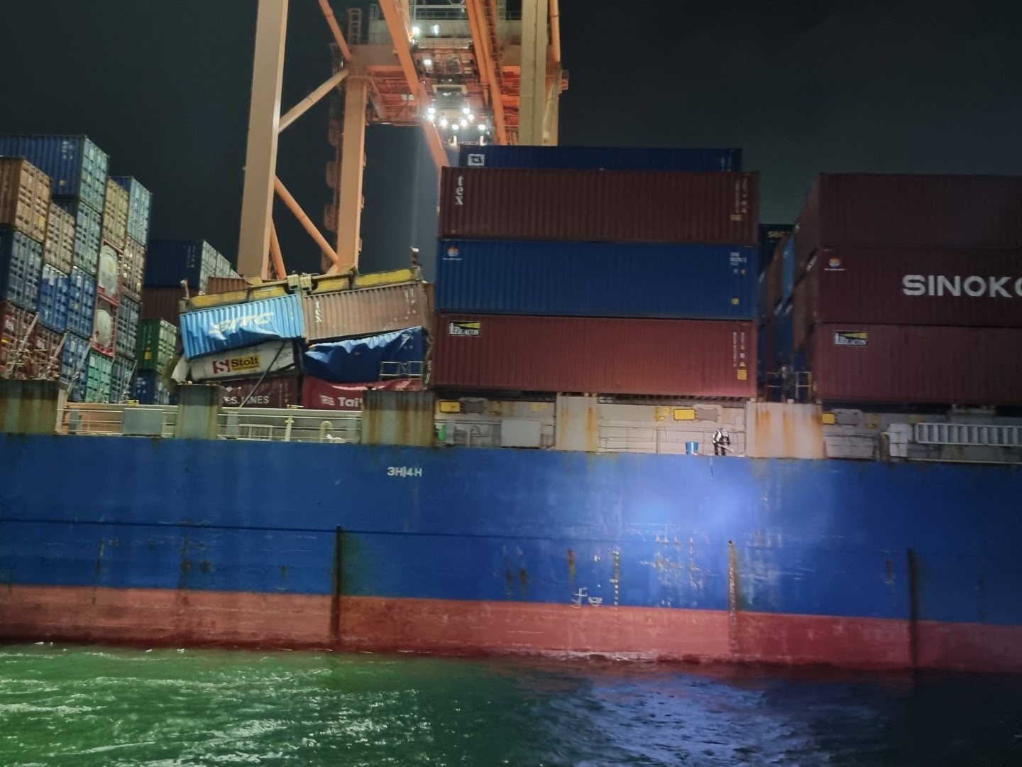 해경은 신고접수 후 경비함정과 방제정을 출동시켜 확인결과 A호에 크레인을 이용하여 컨테이너 이동작업 중 크레인 고정장치가 파손되면서 컨테이너가 선박 내로 추락해 적재되어 있던 유해액체물질 컨테이너를 파손시켜 에틸리덴 노보르닌 약 20톤이 선박 내 화물창로 유출된 것으로 추정하고 있다.