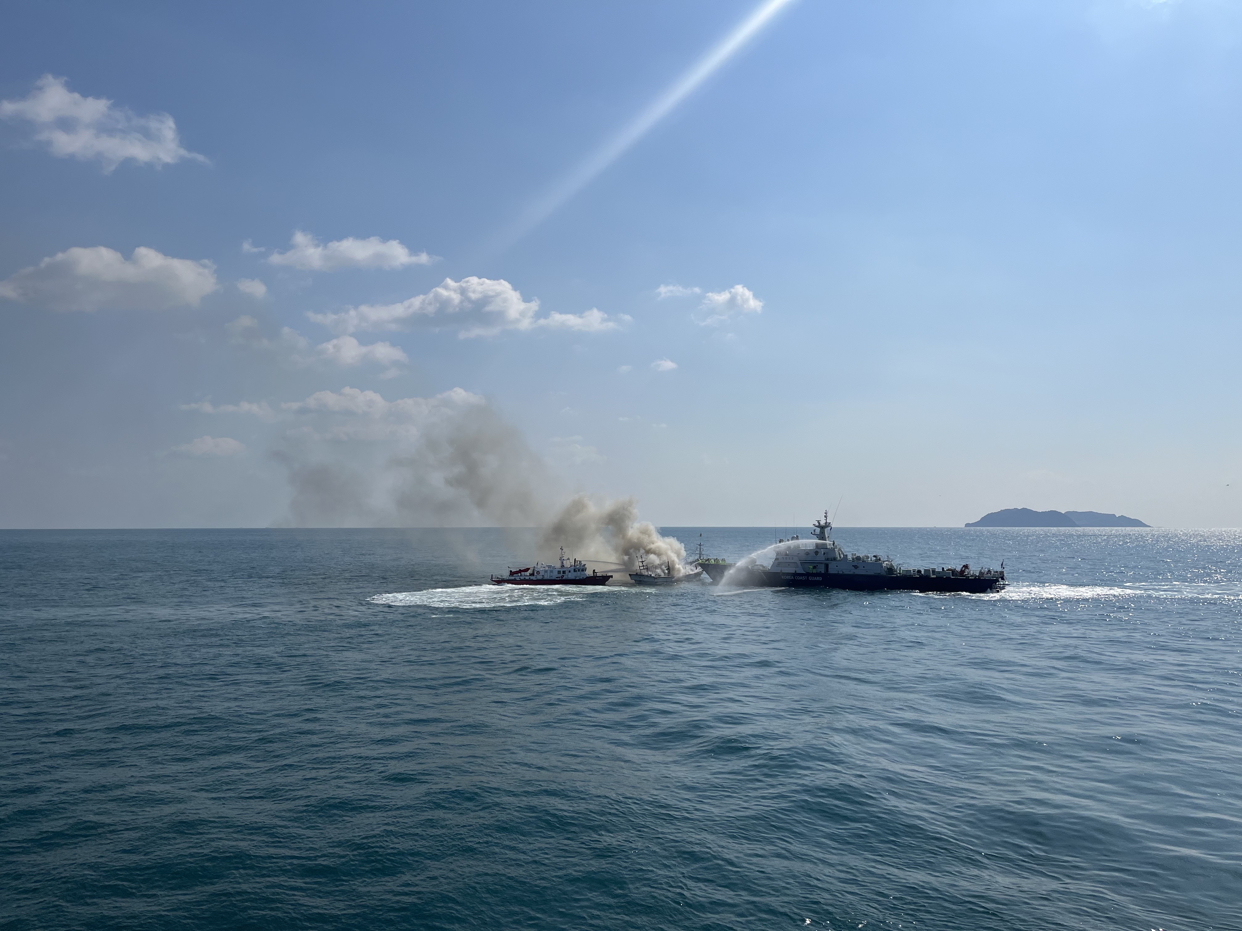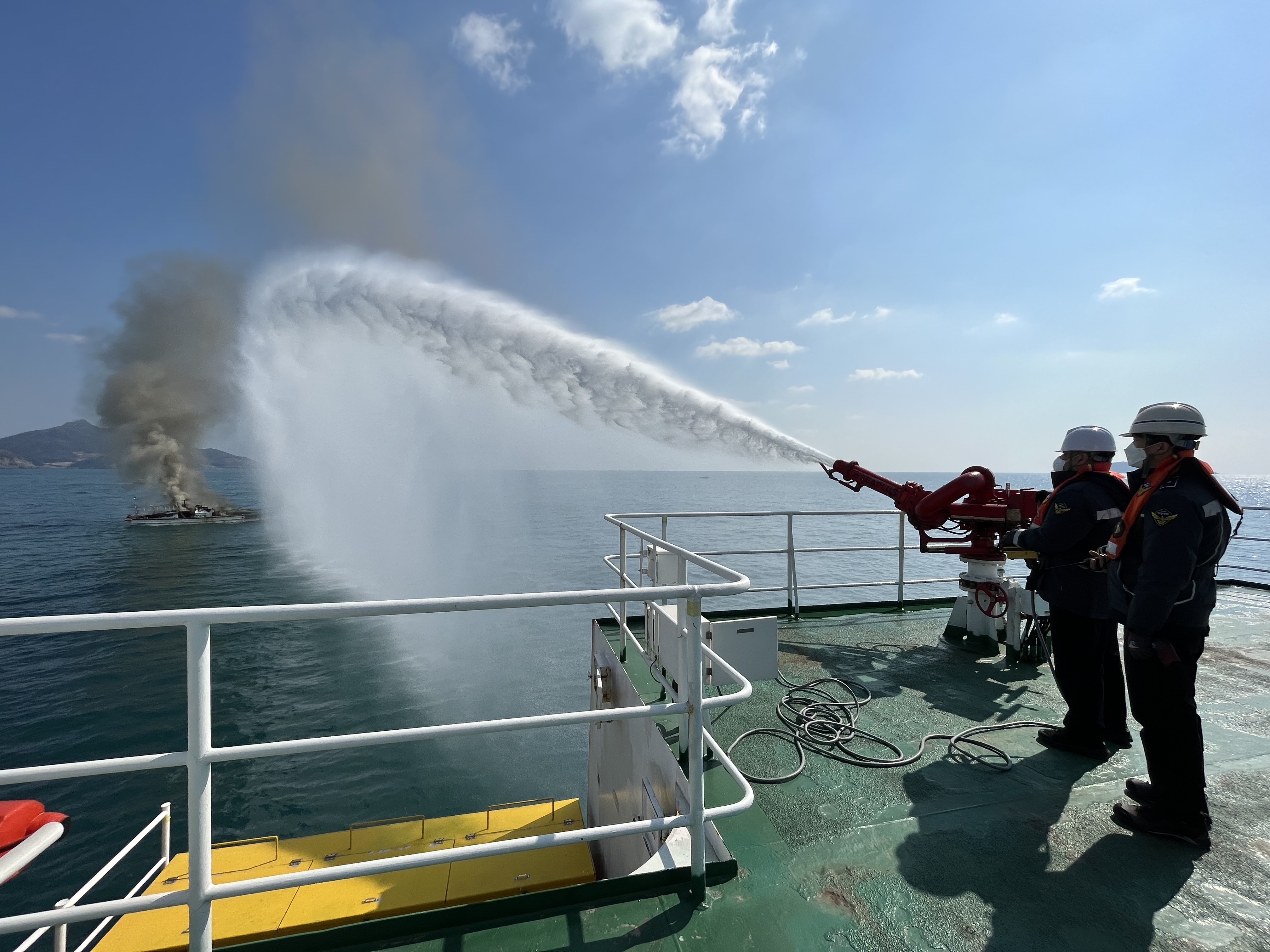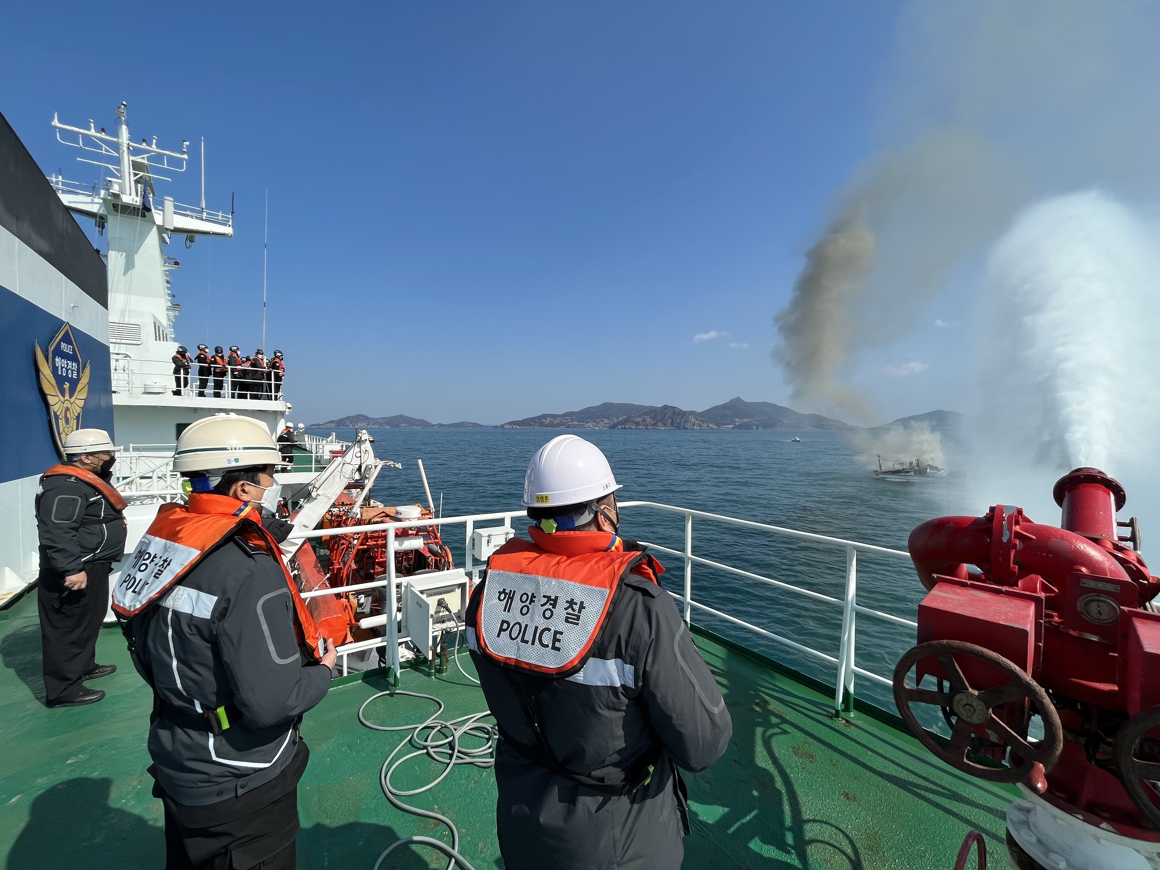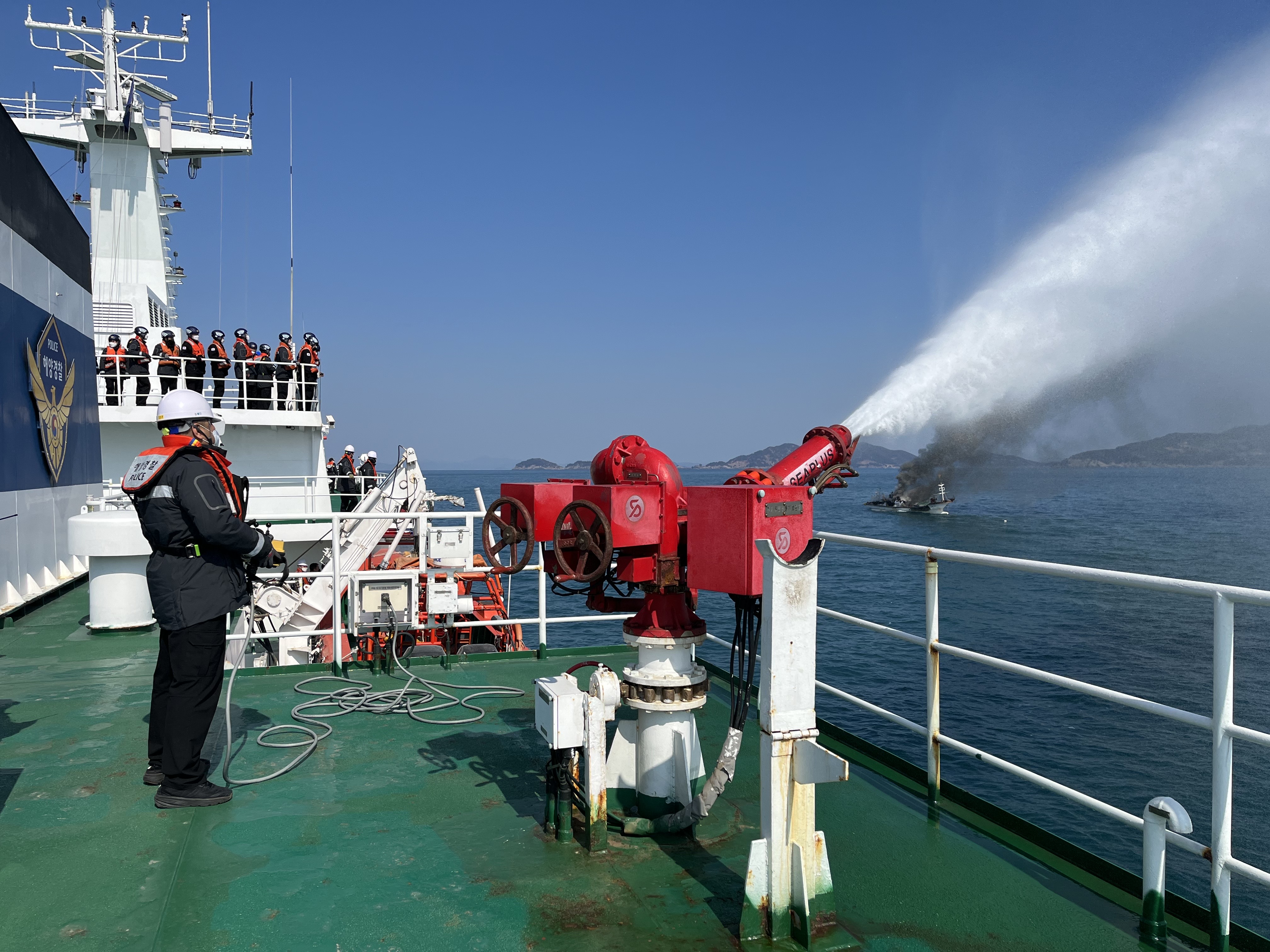 마침 인근 바다에서 항해 실습을 위해 출항하던 해양경찰교육원 실습함인 바다로함에서도 해양경찰청 상황실을 통해 현장 상황을 접수한 뒤 화재 선박 진화작업 지원을 위해 이동했다.