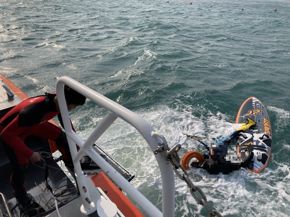 울산해양경찰서는 4일 오후 울주군 진하해수욕장 인근해상에서 표류 중이던 윈드서핑 레저객 1명을 긴급구조 했다고 밝혔다.