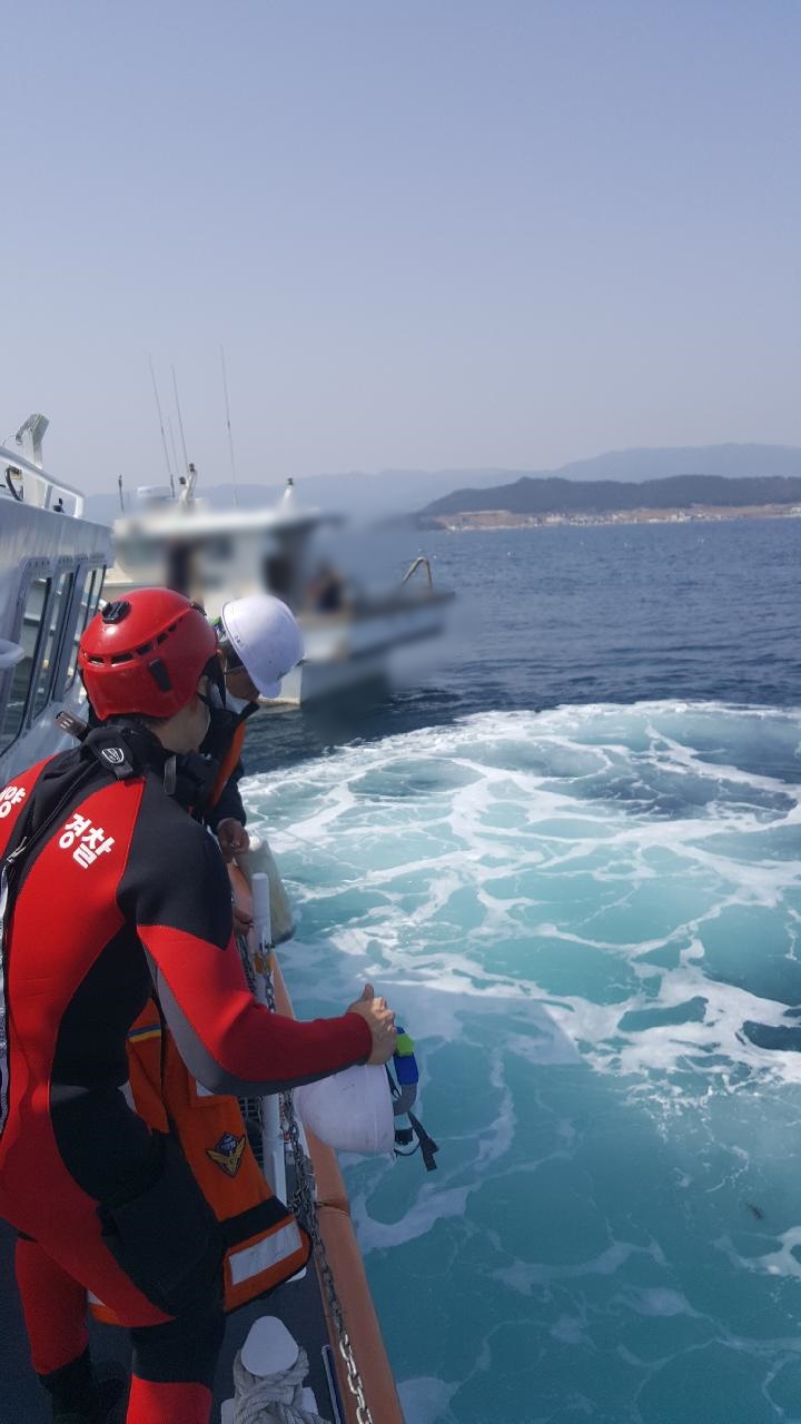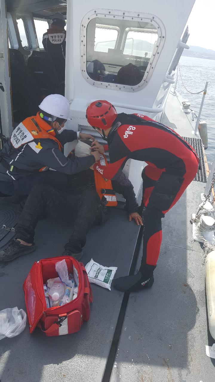 현장에 도착한 해경은 머리에 출혈이 나는 B씨에게 지혈대를 이용해 응급처치를 하고 연안구조정으로 탑승시켜 같은 날 낮 12시 45분쯤 월포항으로 안전하게 입항했다.