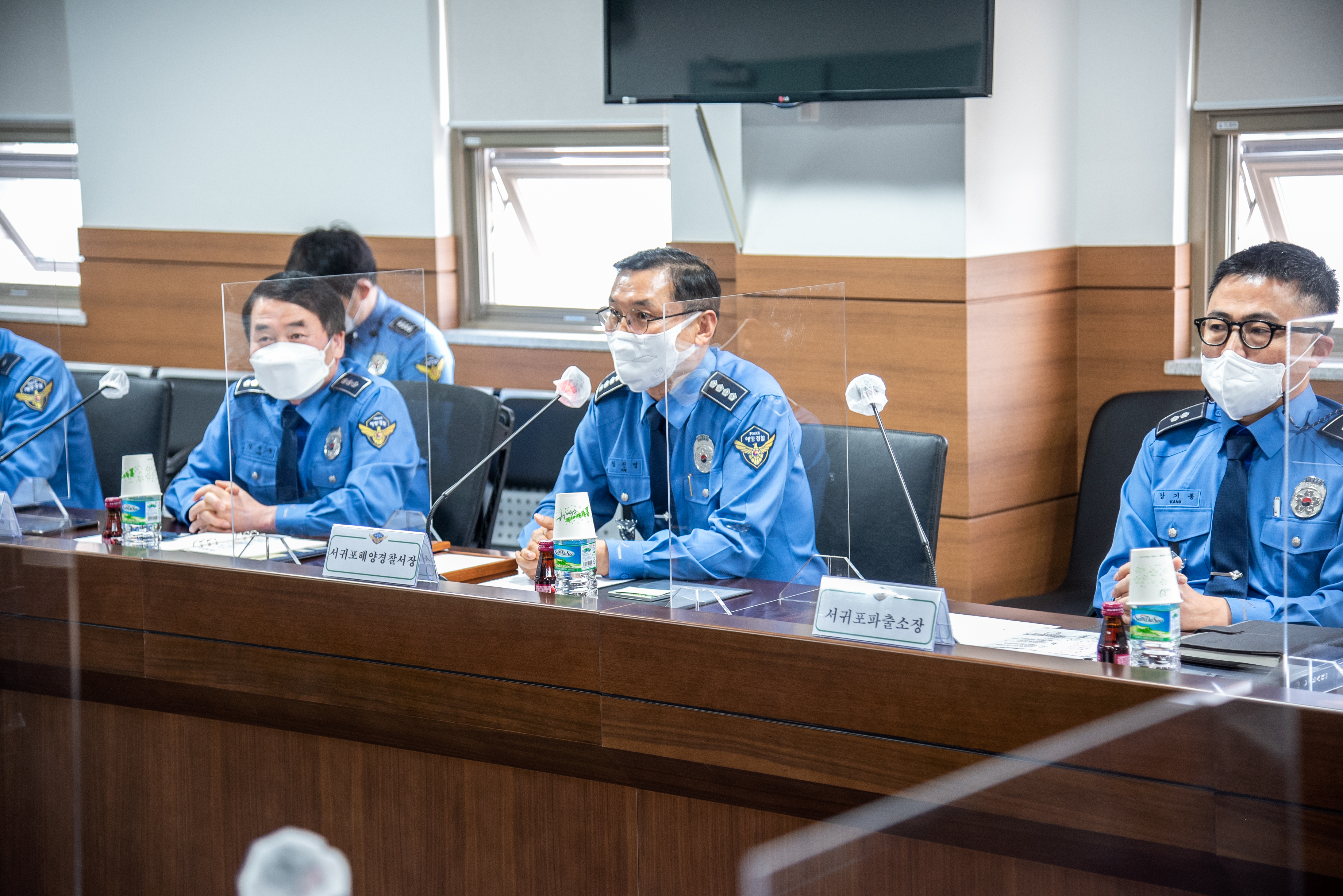 주요 회의 내용은 ▴기상 불량 또는 기상특보 발효 시 어선 안전관리 대책 방안 협의, ▴선박 이동 및 대피명령 준수 협조, ▴사고 발생 시 인명구조 적극 협조, ▴기타 애로사항 의견 청취 등으로 기상불량 시 조업선 안전을 위해 심도깊은 의견을 나눴다.