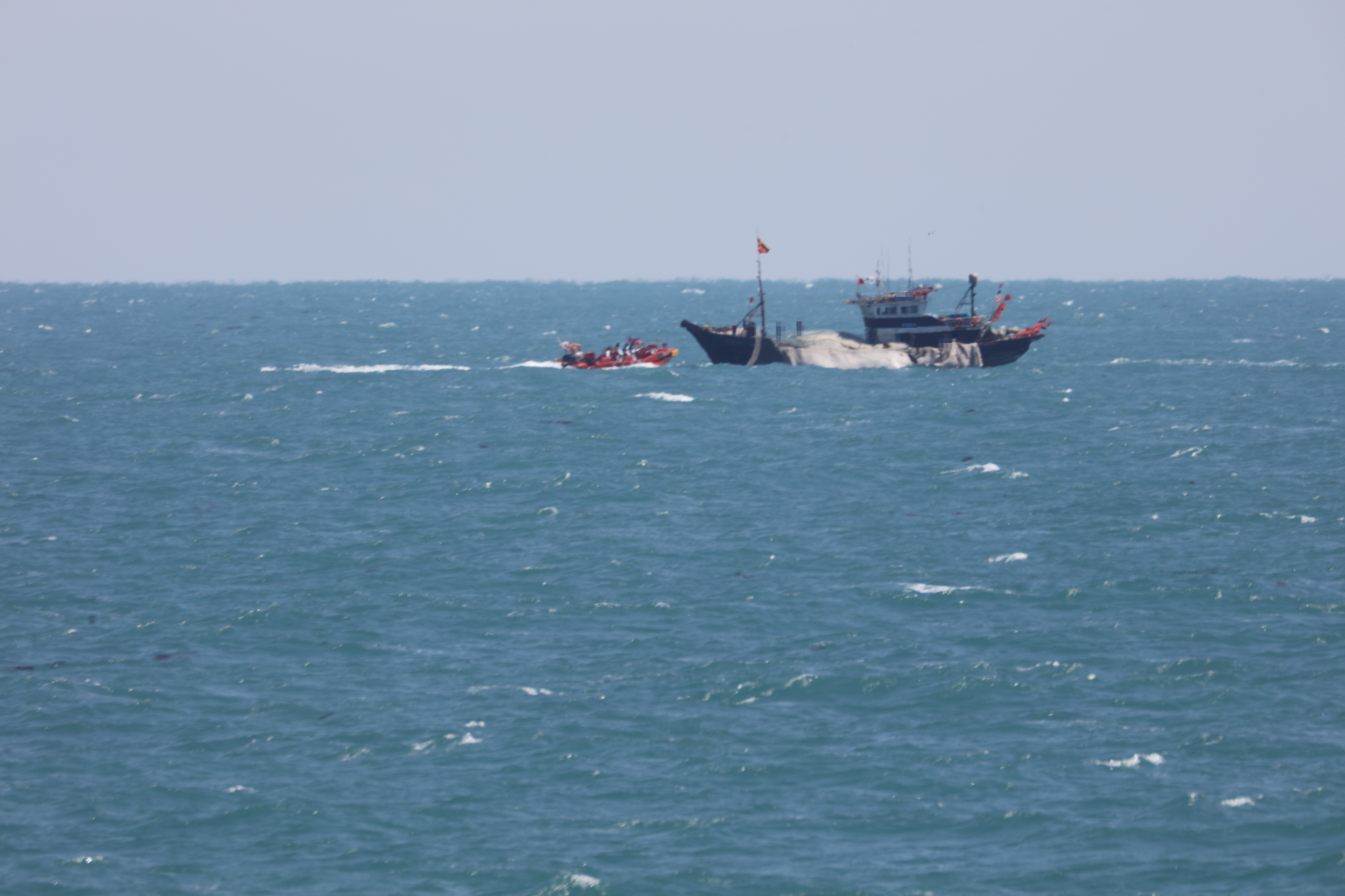 2일(토) 낮 12시 30분경 제주시 차귀도 남서쪽 약 74km(대한민국 어업협정선 내측 약 61km 해상)에서 중국어선 A호(71톤/유망/금주선적/승선원 9명)발견하고 인근 해역 경비 중이던 3,000톤급 경비함정을 이동시켜 오후 1시 30분경 해상 특수기동대가 승선한 고속단정 2척이 검문 검색을 실시하였다.