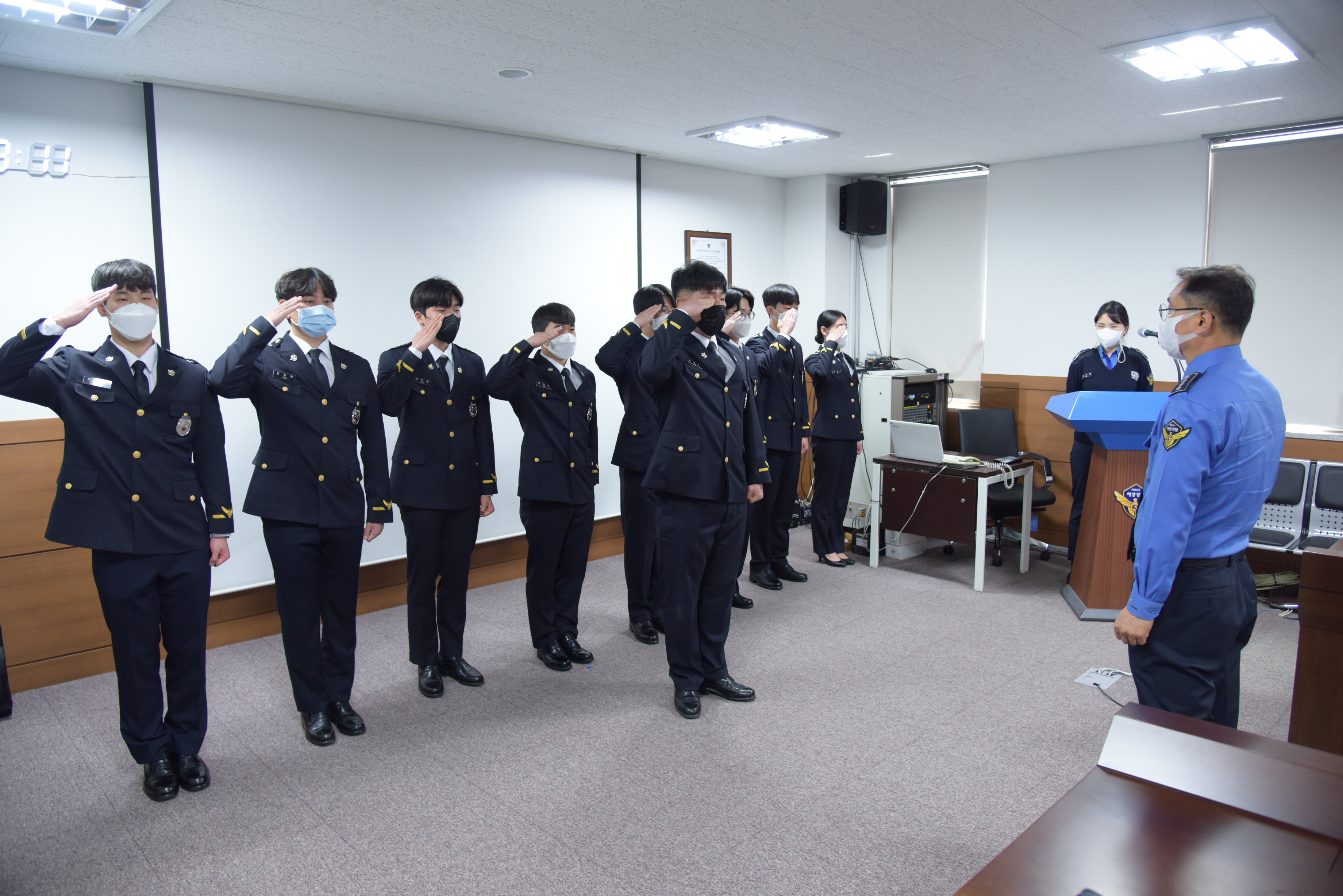 신고식 자리에서 김진영 서장은 “해양경찰관으로서 첫발을 내딛는 지금, 교육원에서 배우고 경험한 것들을 선배들의 노하우로 단단히 다져 어떠한 상황에서도 국민들이 기대고 신뢰할 수 있는 든든한 해양경찰로 거듭날 수 있도록 최선을 다해 실습에 임해달라”고 교육생들에게 당부했다.