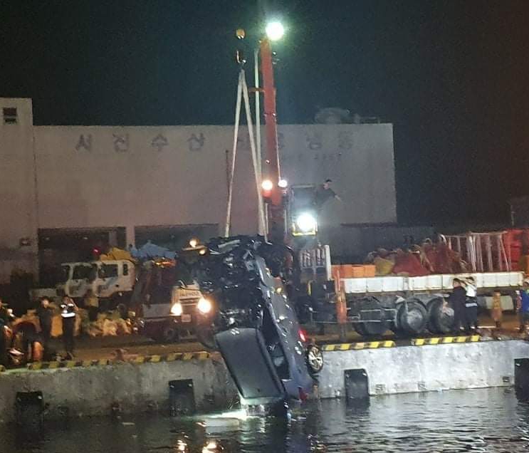 군산해양경찰서에 따르면, 20일 오전 1시48분께 전북 군산시 비응도동 비응항에서 운전자 39살 A씨가 타고 있던 회색 승용차량이 바다에 추락했다.