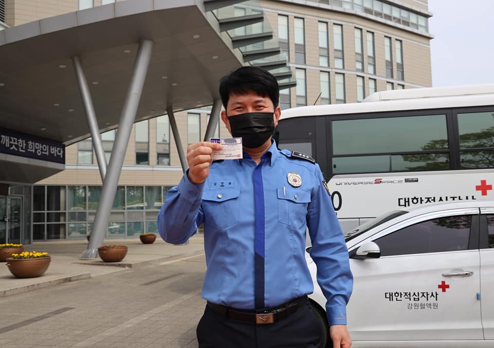 동해지방해양경찰청은 21일 코로나19 장기화로 인한 혈액수급 위기를 극복하기 위하여 대한적십자사 강릉혈액원과 협업해 청사 내에서 사랑의 헌혈운동을 펼쳤다.