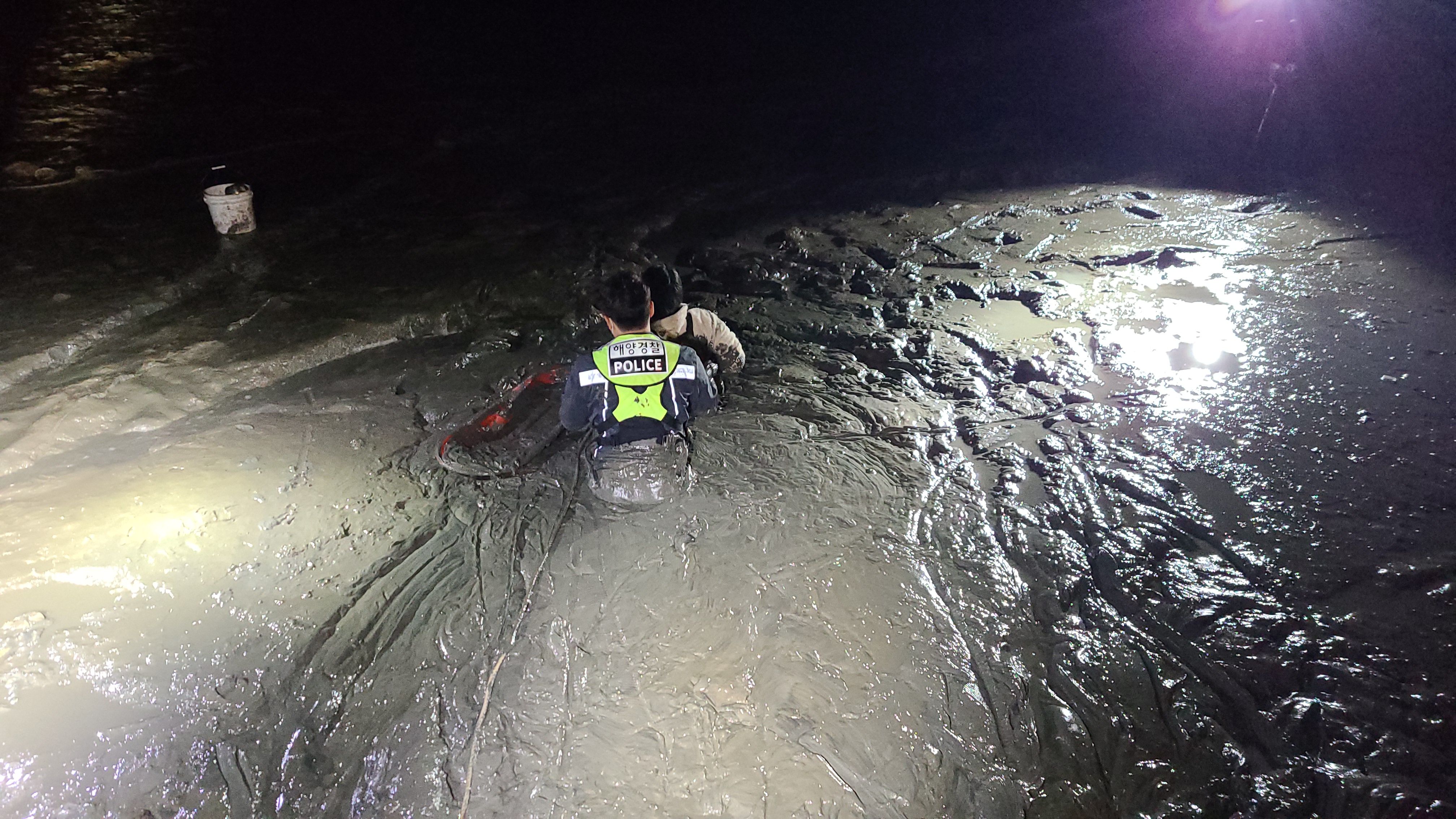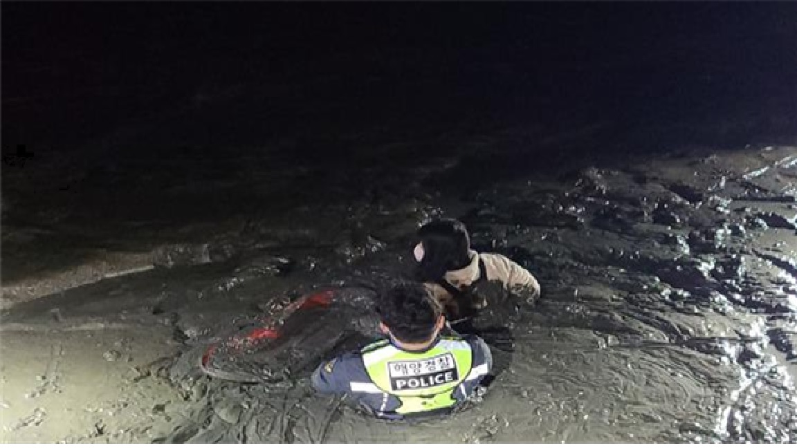야간 취약시간 때 해안가 순찰 중이던 마검포파출소 경찰관(경장김종삼 등 3명)들이 갯벌에 몸이 빠져 움직일 수 없는 관광객 5명을 발견하고, 즉시 갯벌에 들어가 갯벌고립자 구조용 갯보드(뻘배)를 이용하여 전원 안전하게 구조하였다.