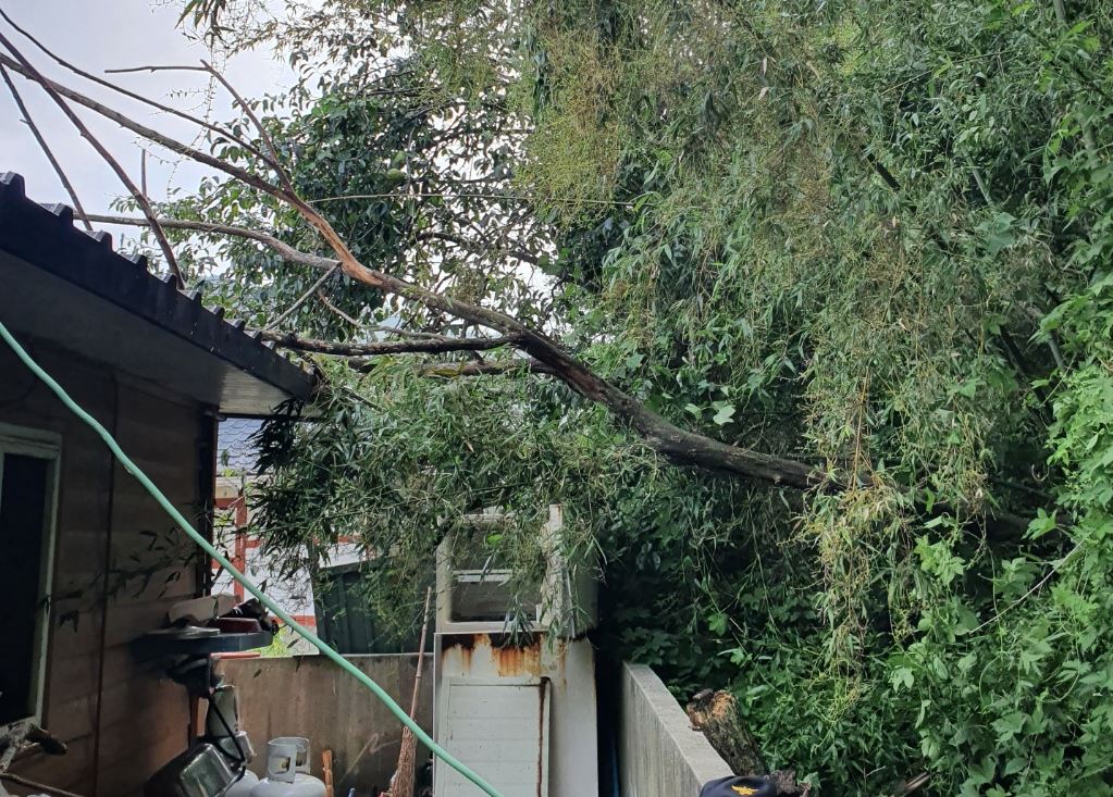 지붕을 덮친 나무는 지난 밤 태풍 ‘바비’의 강한 바람에 의해 쓰러진 것으로 보이며, 출동한 소방대원은 체인톱을 이용하여 안전하게 나무를 제거 하였다.