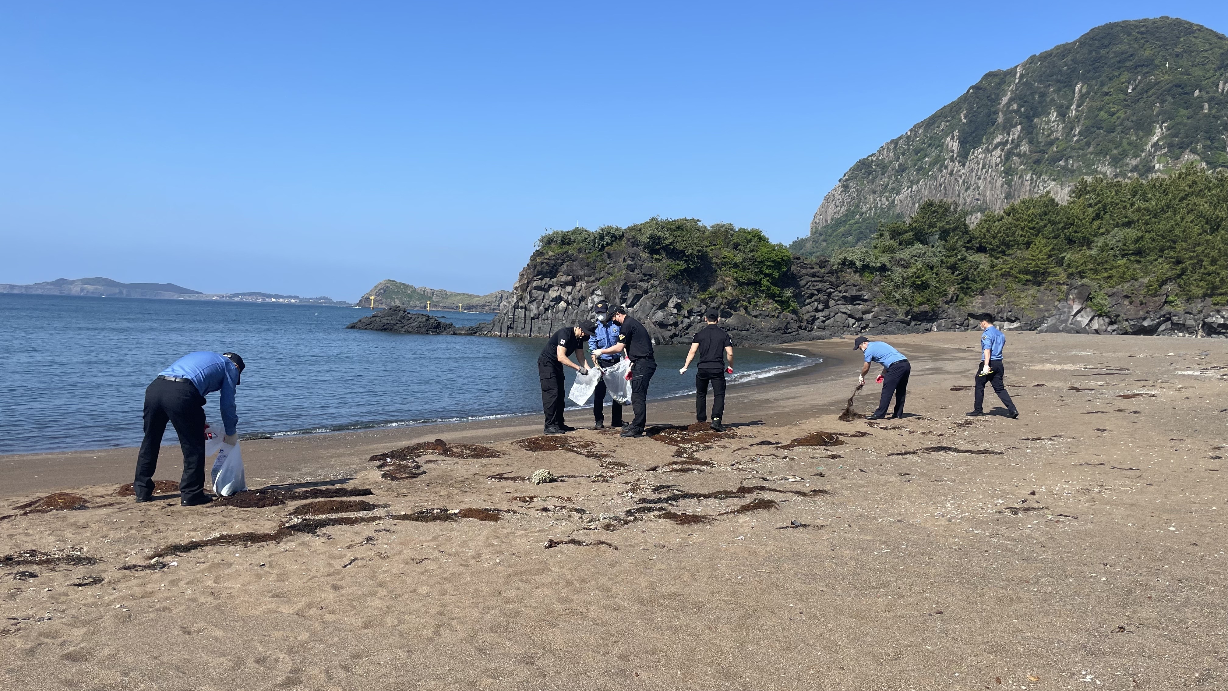 서귀포해양경찰서에 따르면, 이번 환경미화 활동은 화순항 일대를 방문하는 국민들이 깨끗한 환경에서 물놀이 등의 관광을 즐길 수 있도록 화순파출소와 3003함 직원 및 의경 15여명이 참여해 정화활동을 펼쳤다.