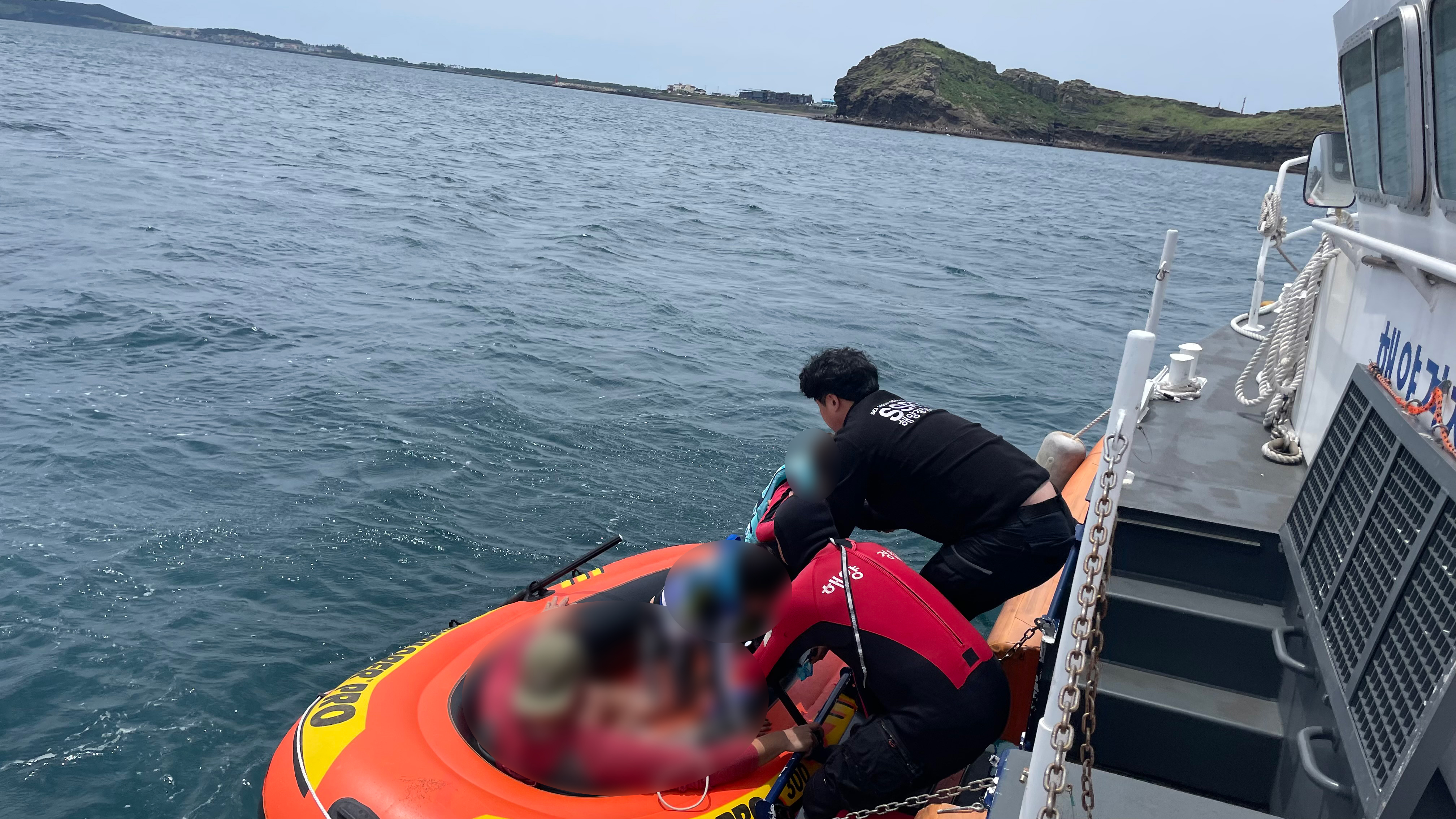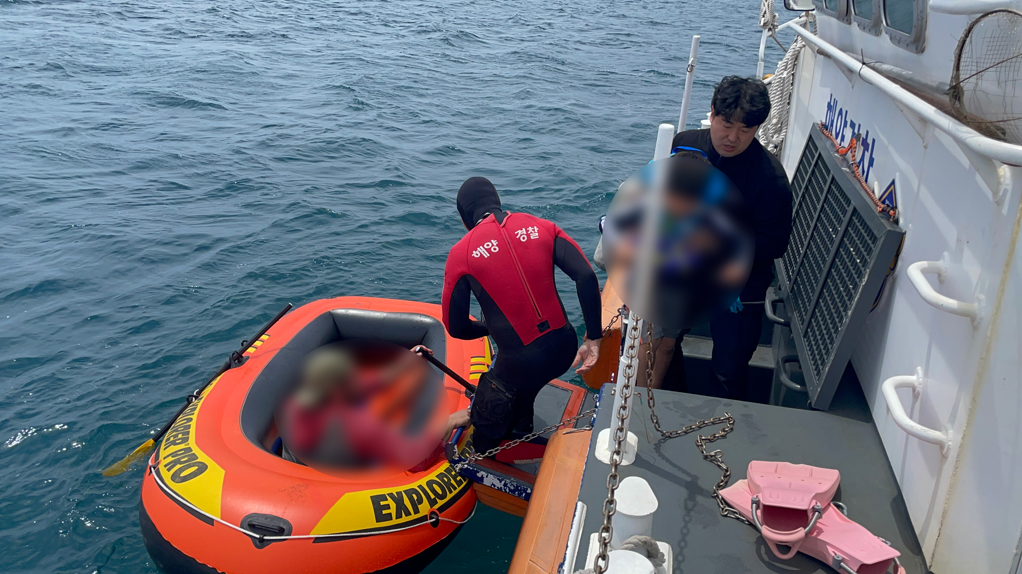 서귀포해양경찰서(서장 김진영)는 오늘(15일) 오후 서귀포시 안덕면 황우치해변 인근 해상에서 고무보트 레저활동 중 간출암에 보트가 찢어져 구조를 요청한 외국인 일가족 3명을 구조했다고 밝혔다.